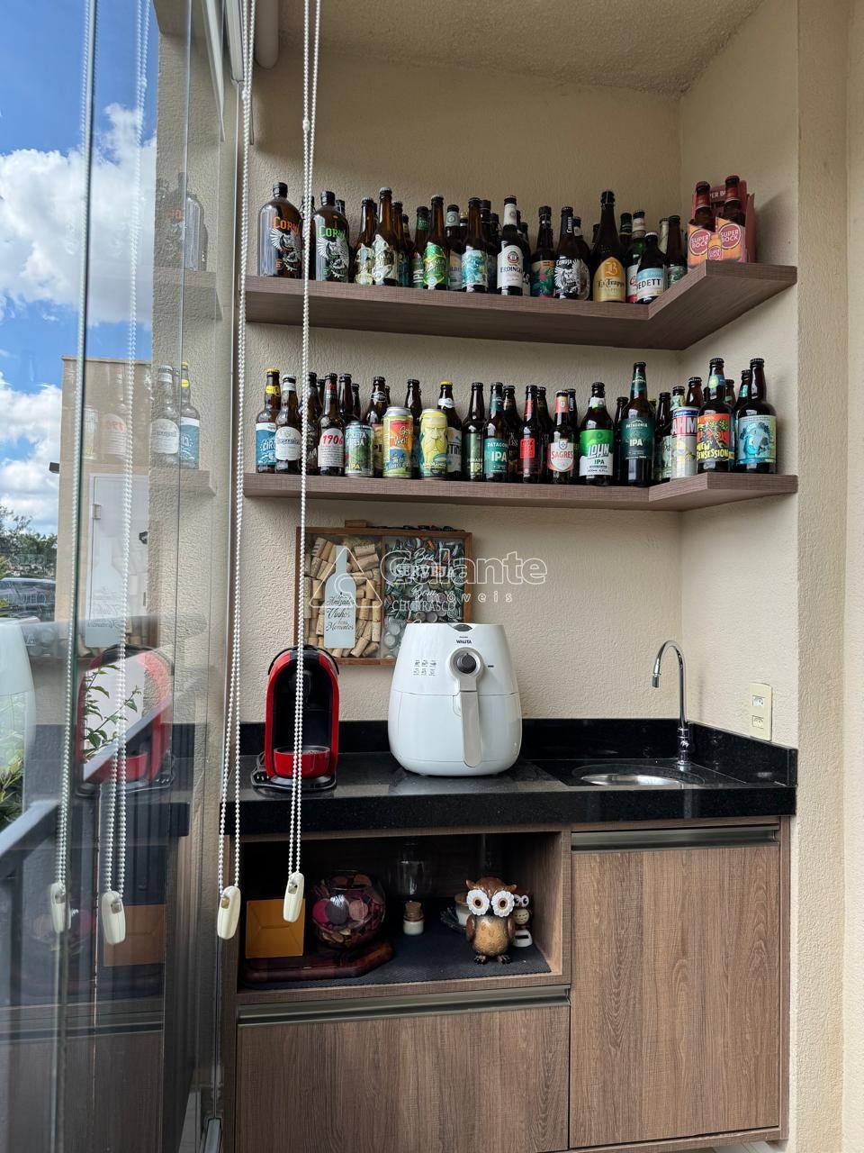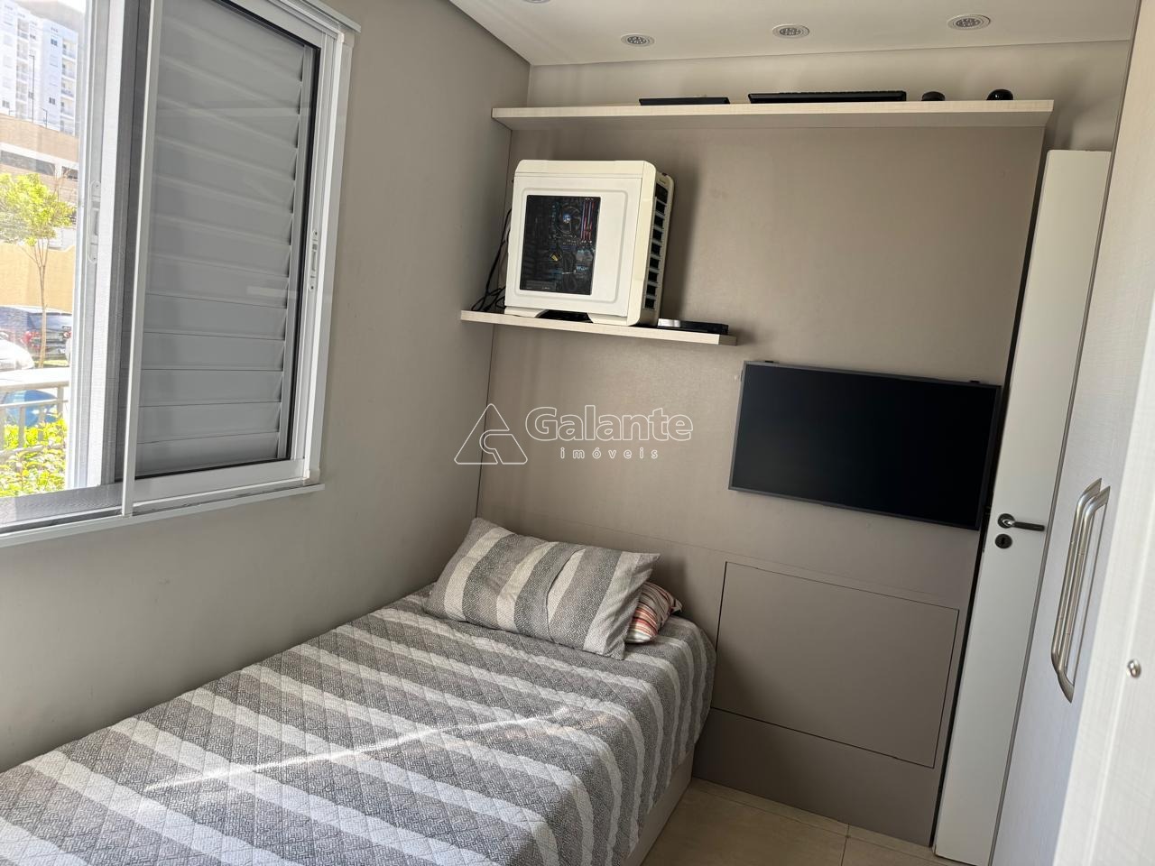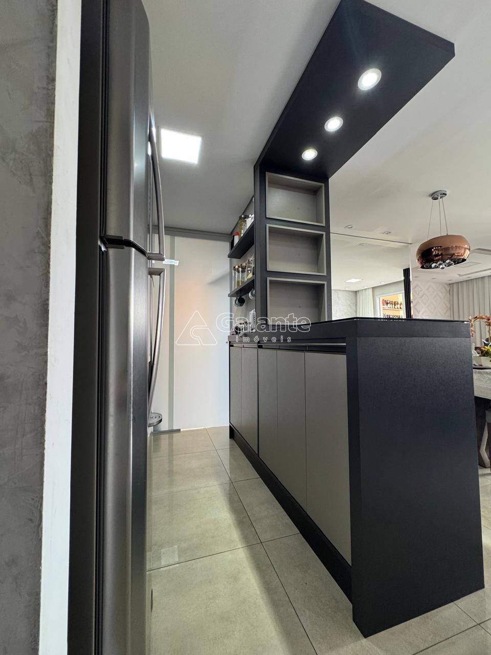 Com essa configuração, possui uma ampla sala de jantar com acabamentos em madeira ripada, espelho, barzinho com cristaleira e adega, a qual integrada a varanda Grill que possui armário, pia, fechamento em vidro e persiana, formam um ambiente lindo e aconchegante; Conta ainda com uma linda divisão para a sala de TV, com nichos e acabamentos ripados. Cozinha estilo americana integrada a sala de jantar e totalmente planejada, com cooktop, coifa e forno embutido, a qual dá acesso a área garden do apto, que se encontra coberta e também com piso porcelanato. A suíte é confortável e muito bem planejada, com ótimos armários, cabeceira embutida, mesinha, espelho, arandela e ar-condicionado quente e frio; o outro dormitório também possui ótimos armários, cabeceira e mesa embutida. Condomínio possui área de lazer completa, portaria 24 hs e um mini mercado.