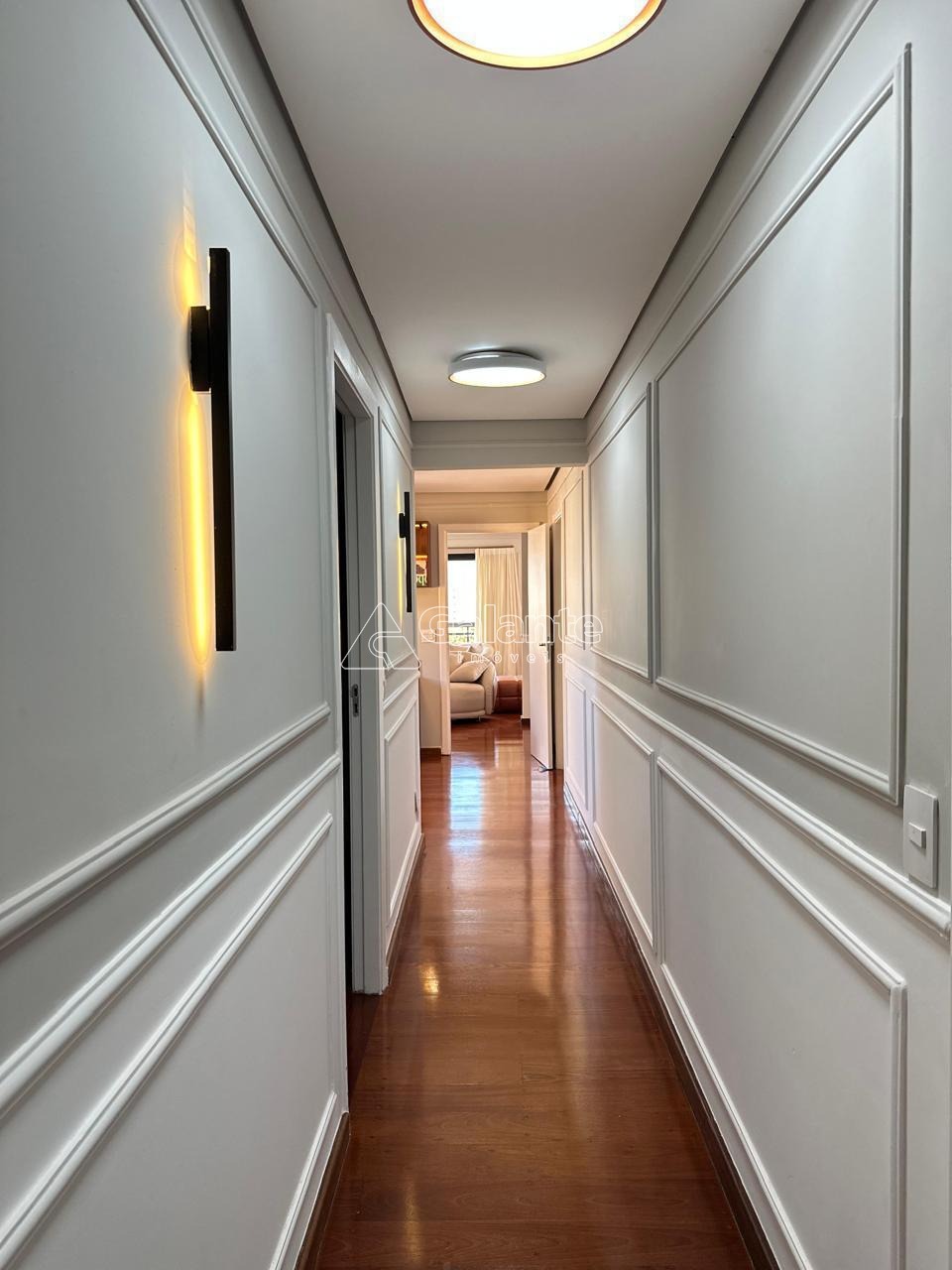 Apartamento à venda com 240 metros quadrados, 4 quartos sendo três suítes espaçosas, todas planejadas com guarda-roupas de portas de vidro com iluminação interna e elegantes, mais um lavabo para visita.