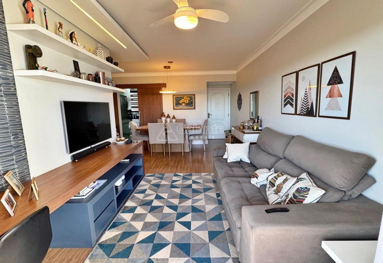 Apartamento com 3 quartos, sendo 1 suíte, armários planejados, ar condicionado, ventiladores de teto, ampla sala em L para 2 ambientes, sacada, banheiro social, cozinha planejada, cooktop, forno, despensa, lavanderia, 02 vagas livres de garagem cobertas.