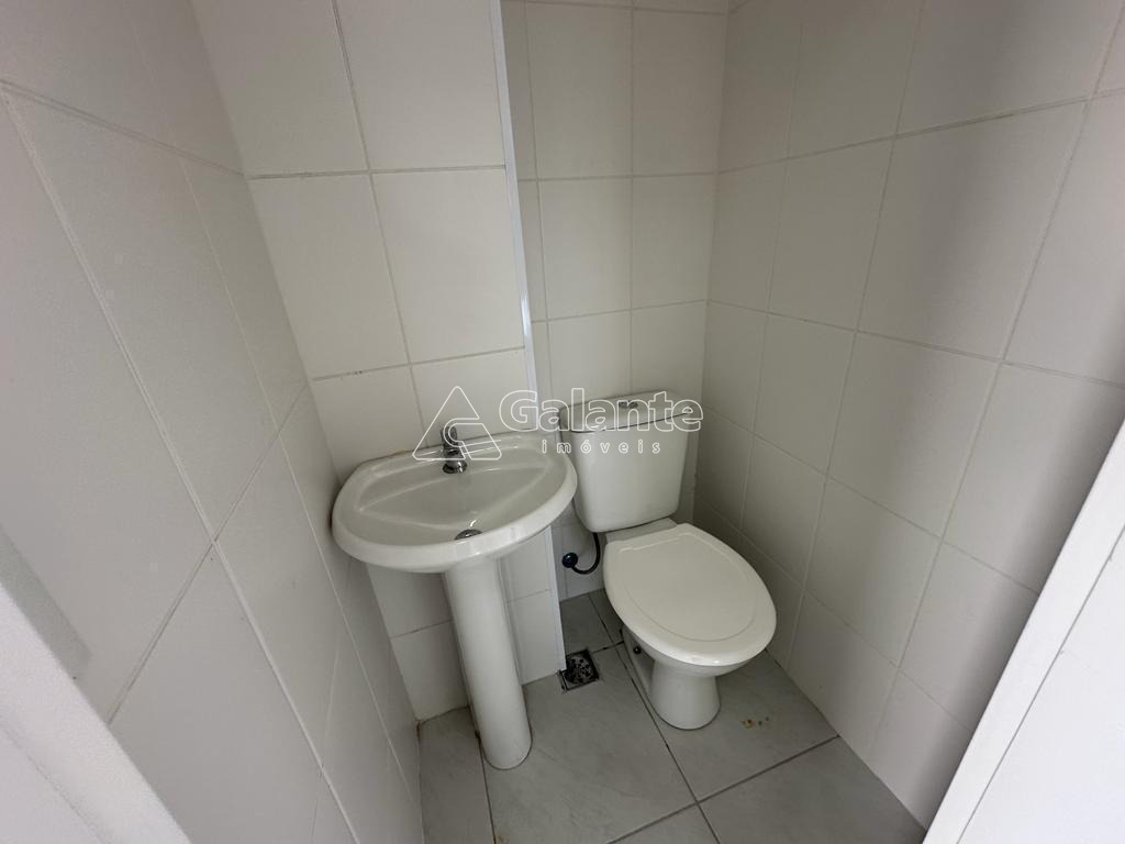 Área de serviço com banheiro de apoio e banheiro social.