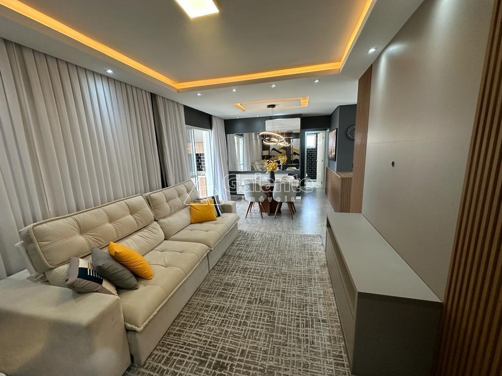 Living ampla para 2 ambientes com varanda gourmet fechada com vidros, mais lavabo.