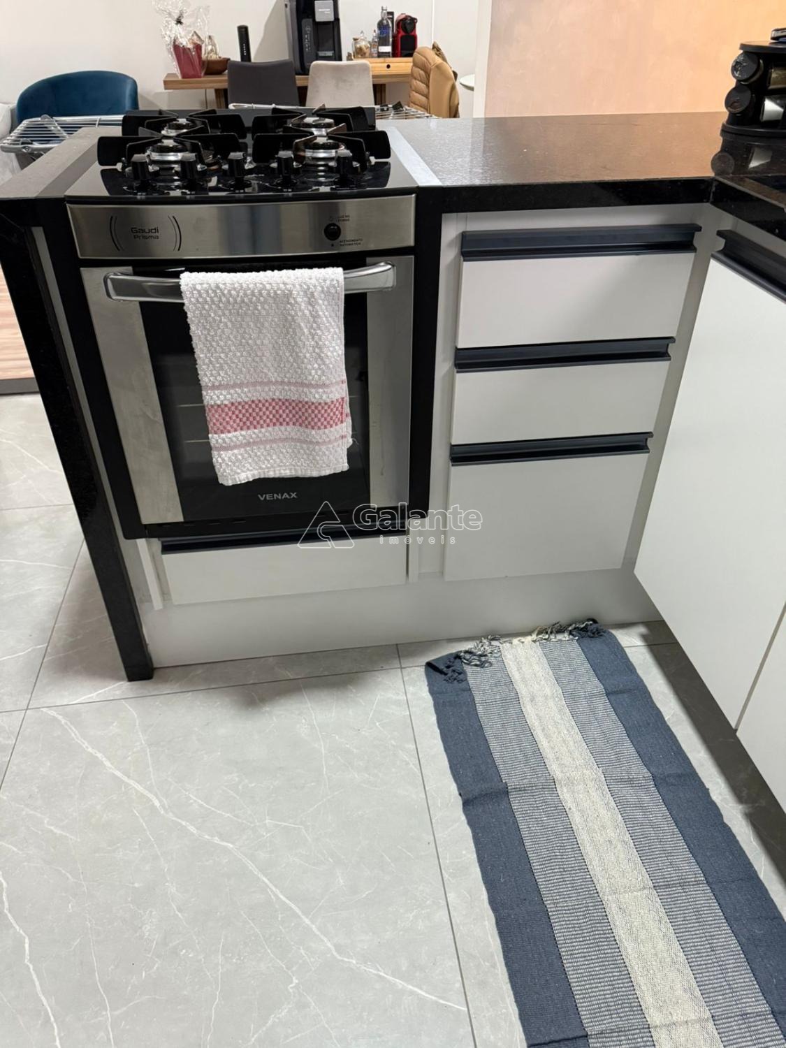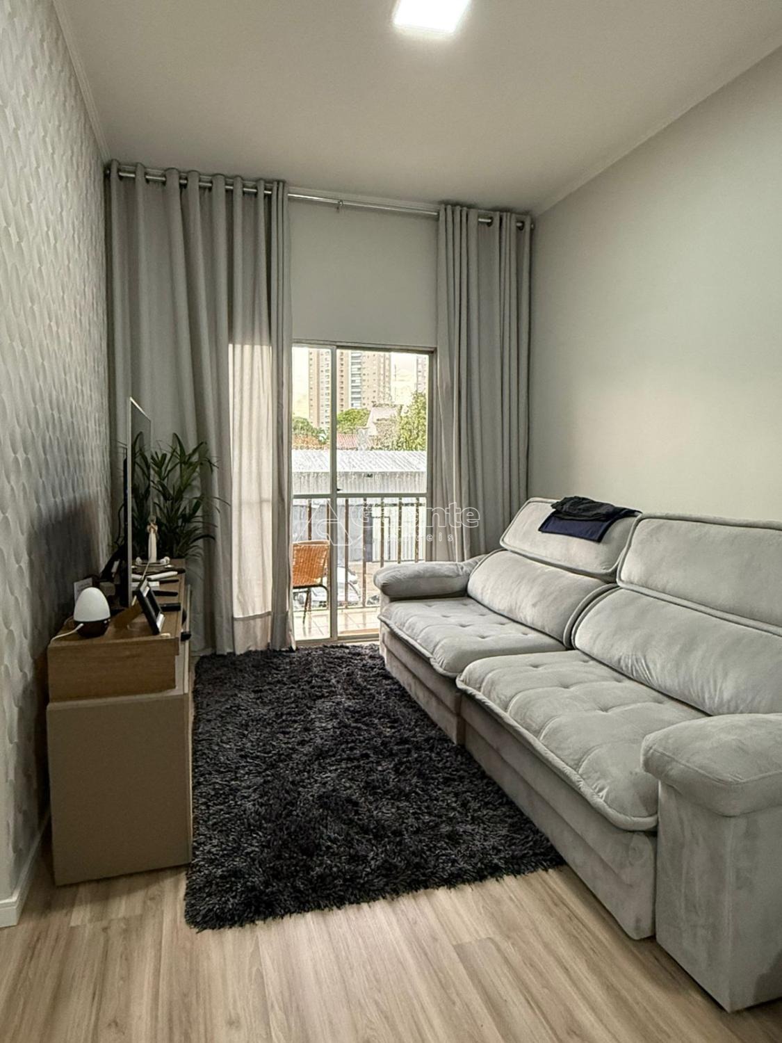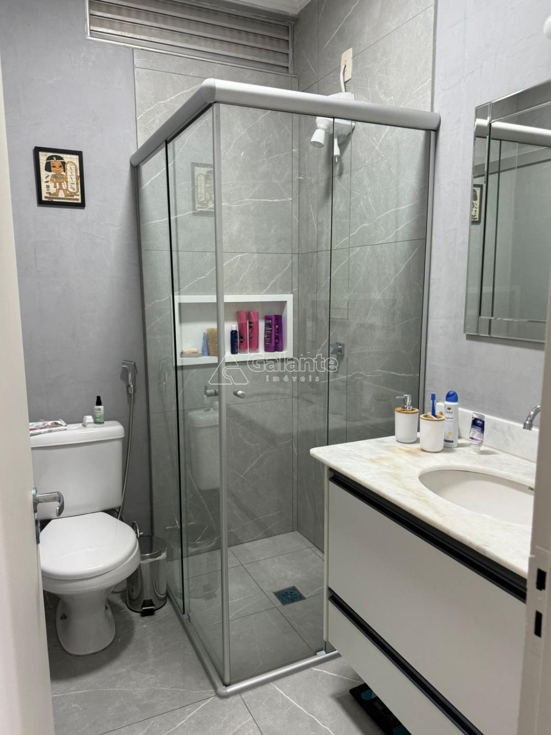 São 104m2 com 3 quartos com planejados sendo 1 suíte, 1 banheiro social, ampla sala para dois ambientes com sacada, cozinha com bancada em granito preto São Gabriel, fogão embutido, dispensa, lavanderia com tanque embutido em granito São Gabriel, 1 vaga coberta e 1 box depósito.