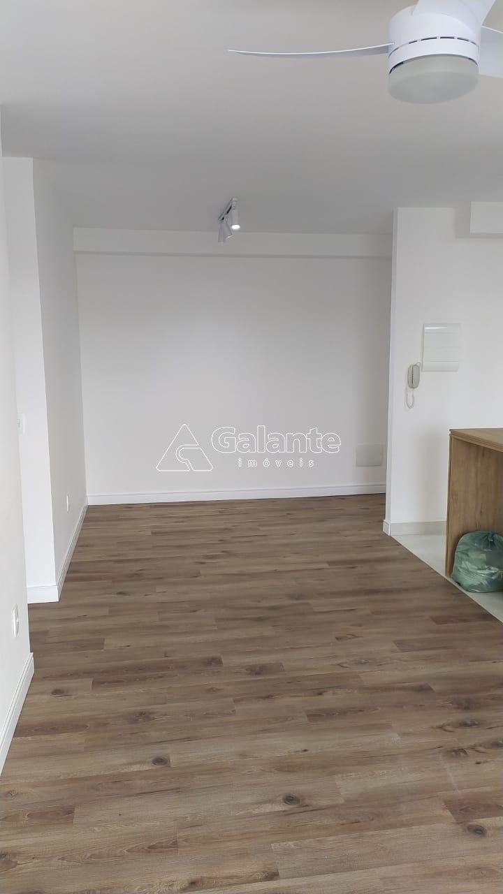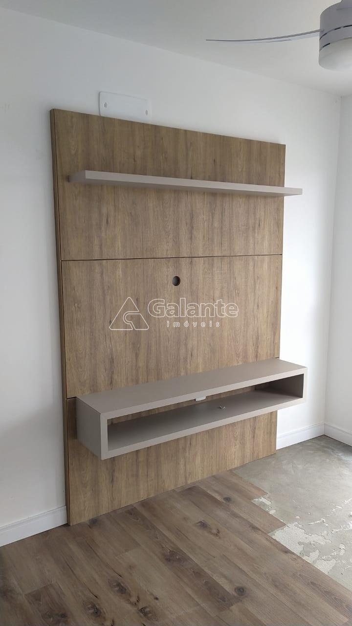 Imóvel possui churrasqueira na sacada e é revestido em laminado.