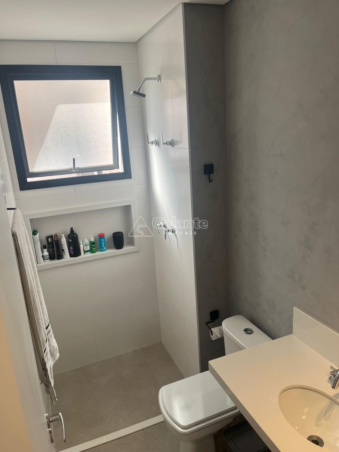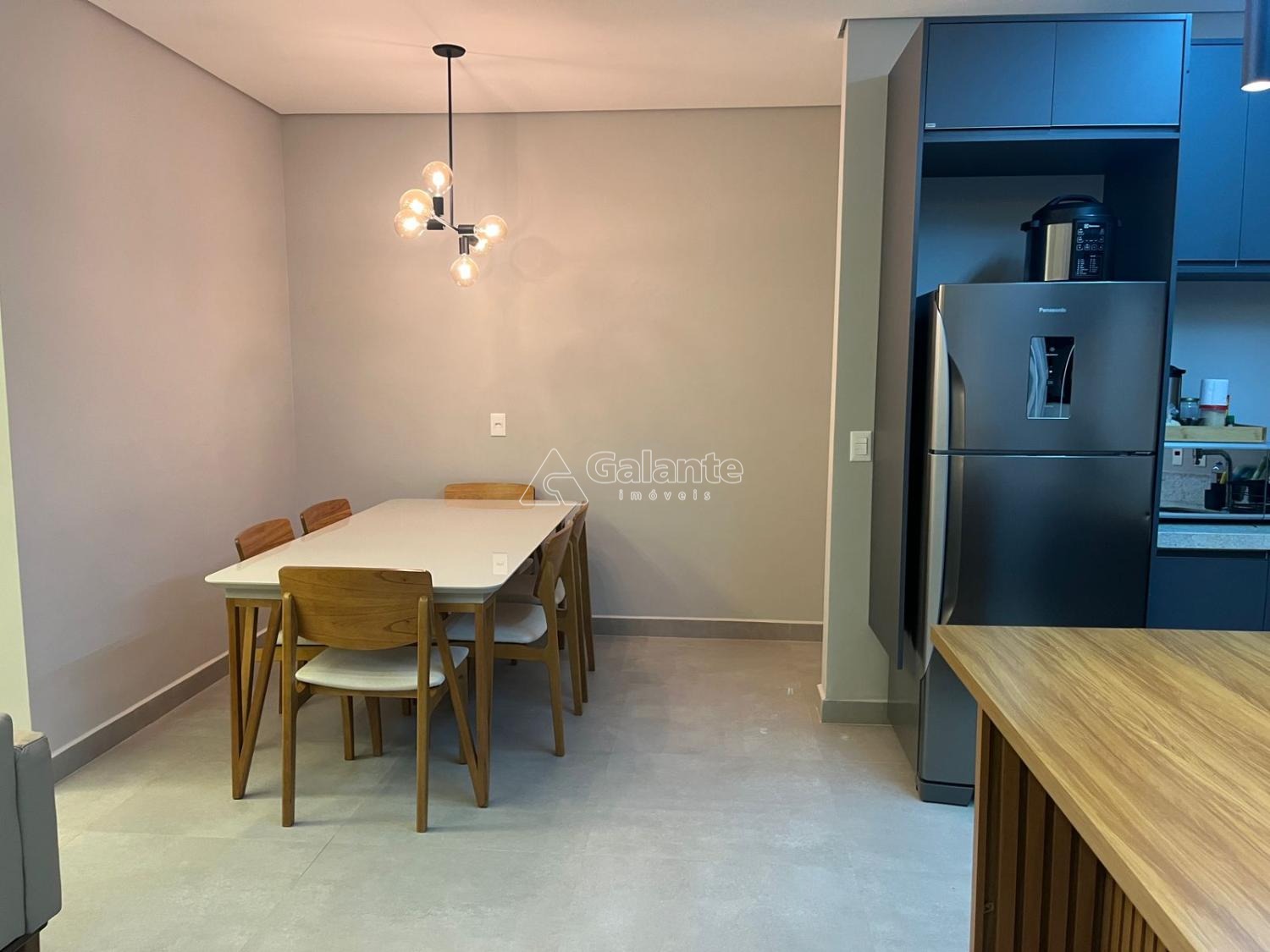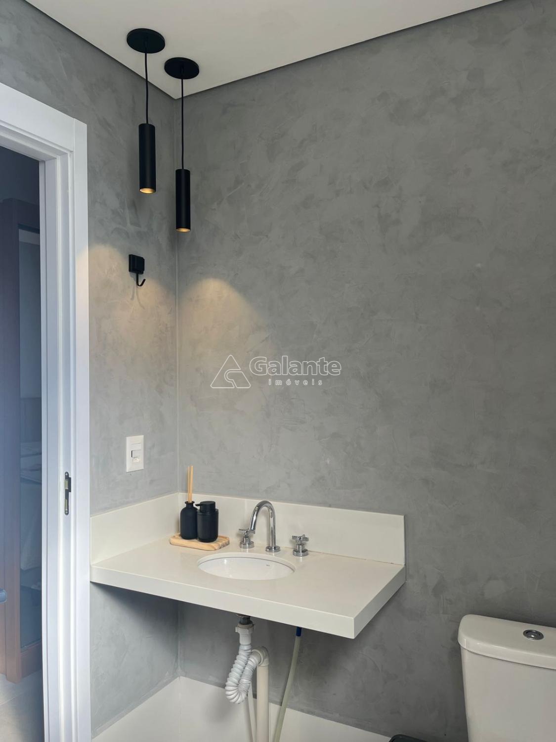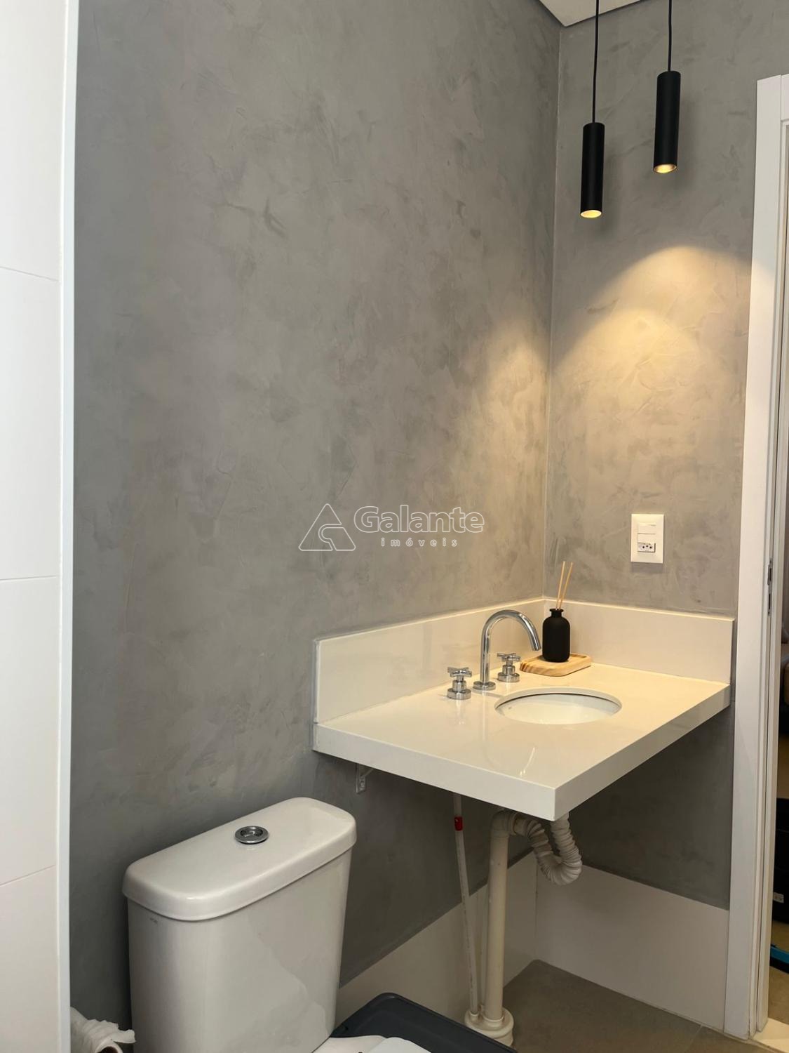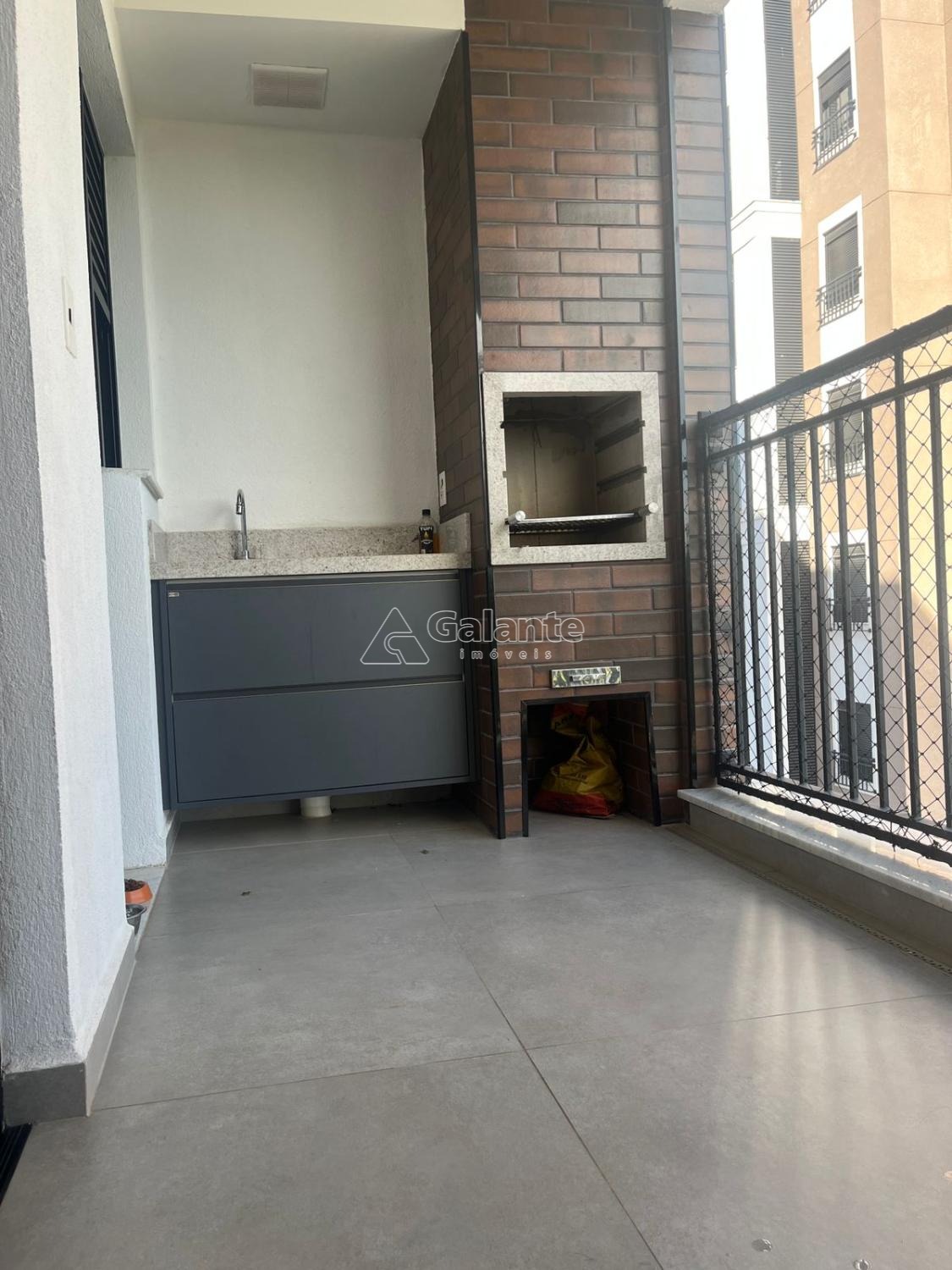 São 76,80m2 com 3 dormitórios, sendo 1 suíte, banheiro social, sala estar e jantar (integradas), cozinha com planejados, área de serviço, varanda gourmet com churrasqueira à carvão e pia.