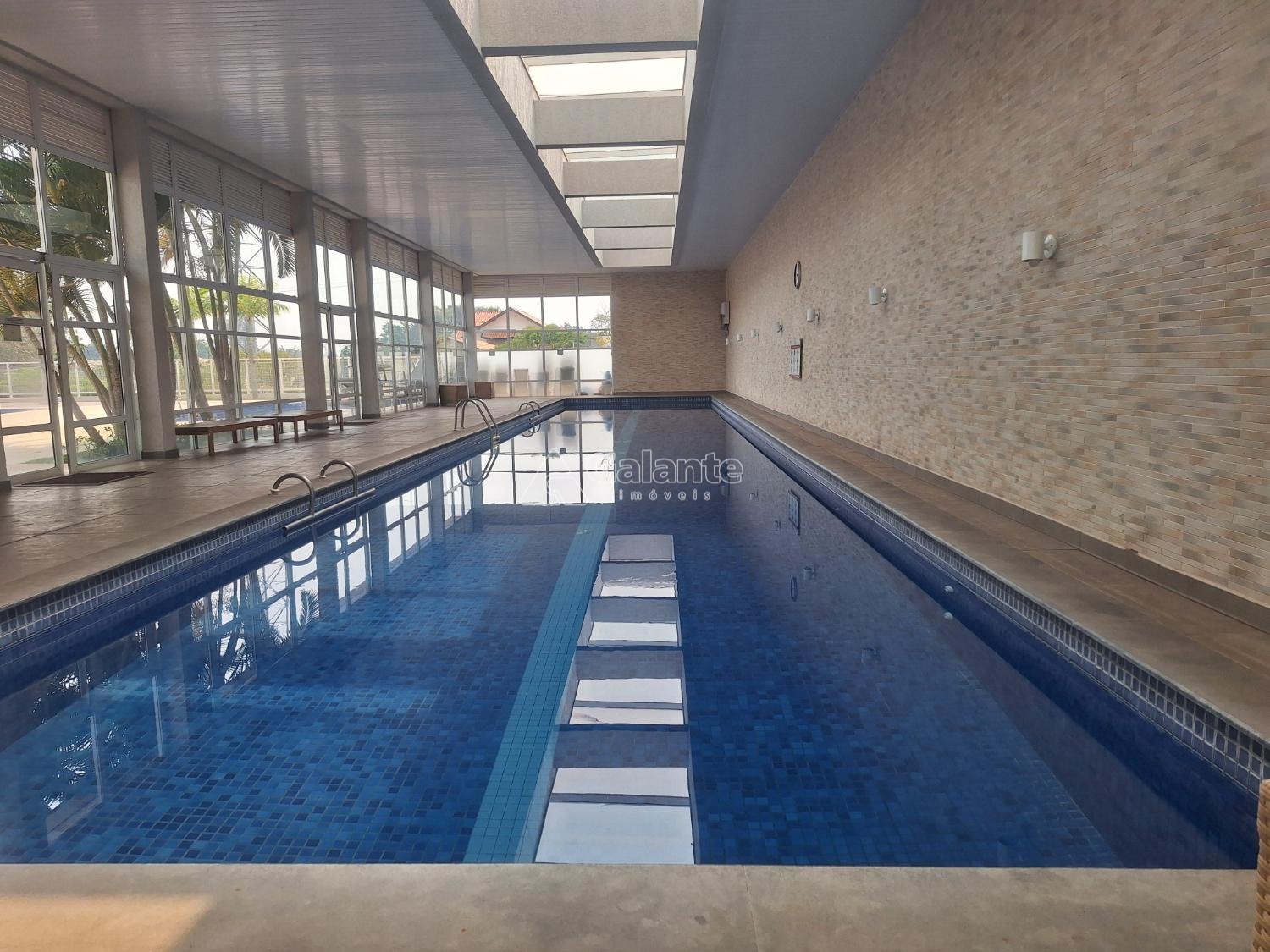 Condomínio com portaria 24 horas, lazer completo, piscina com borda infinita e piscina com raia, coberta e aquecida, academia, sauna, campo de futebol, quadra poliesportiva, salão de festas, salão de jogos, espaço gourmet, churrasqueira, brinquedoteca e playground.