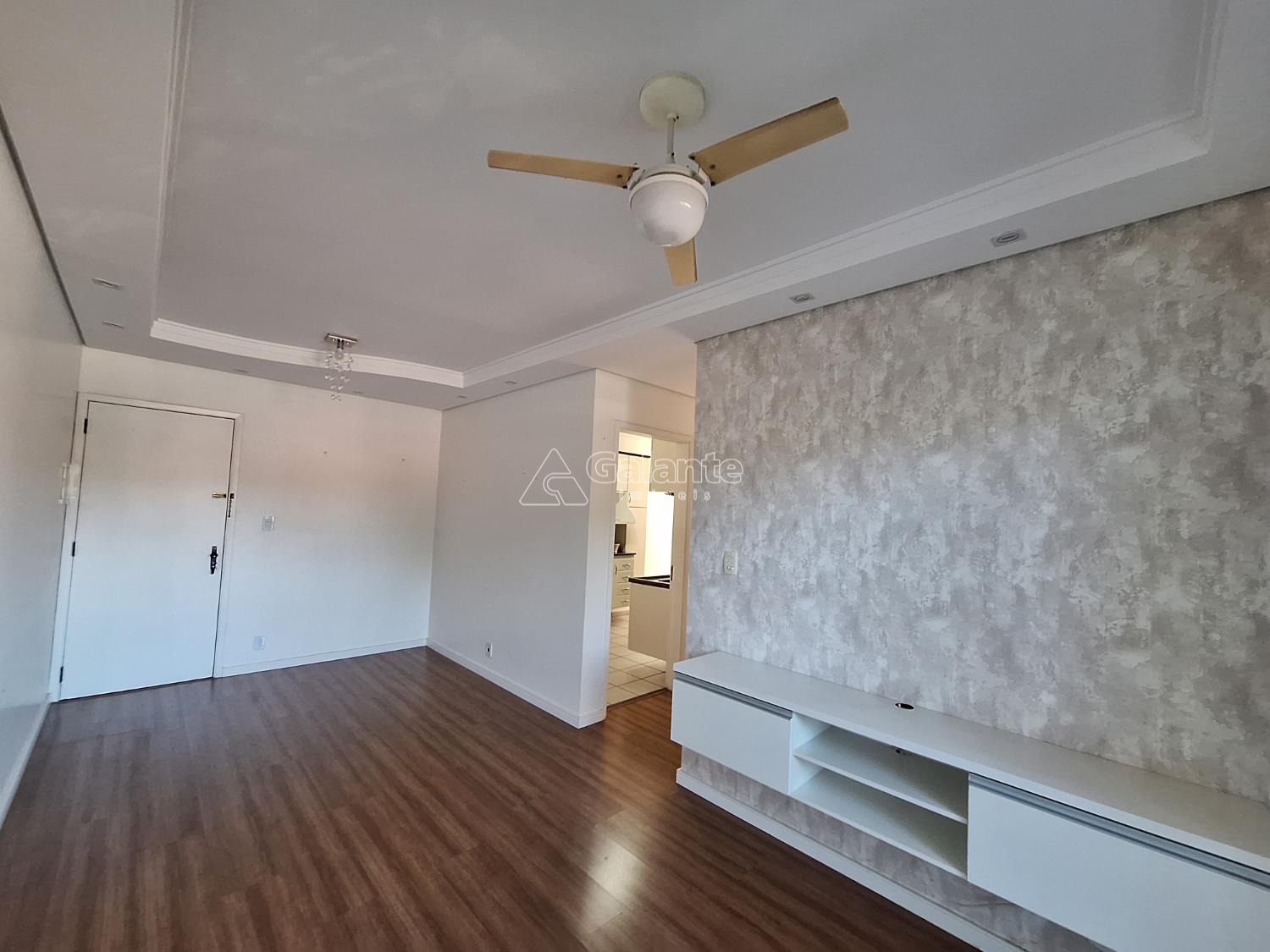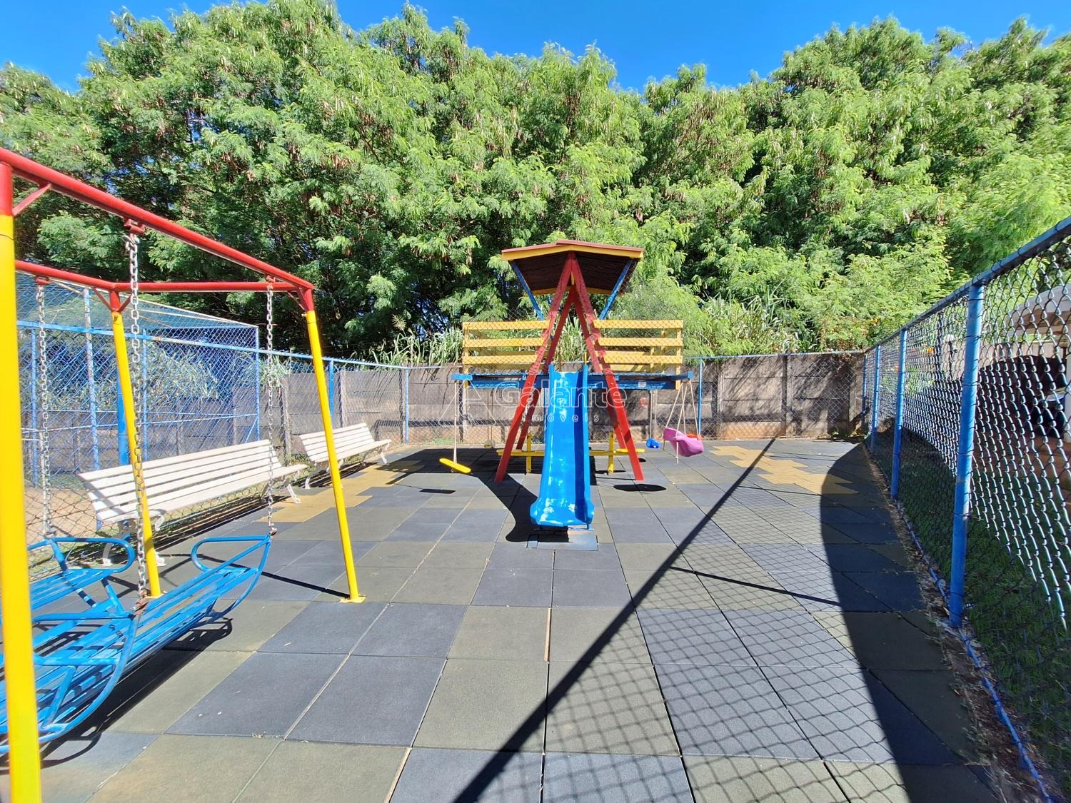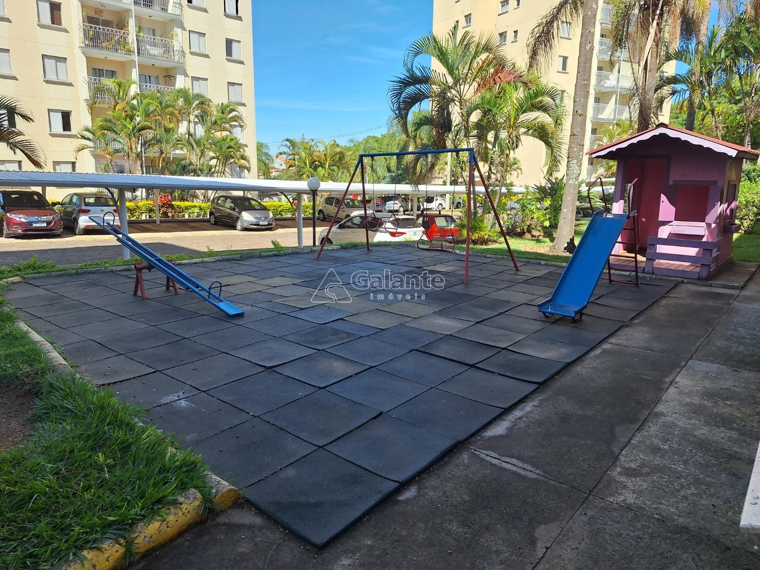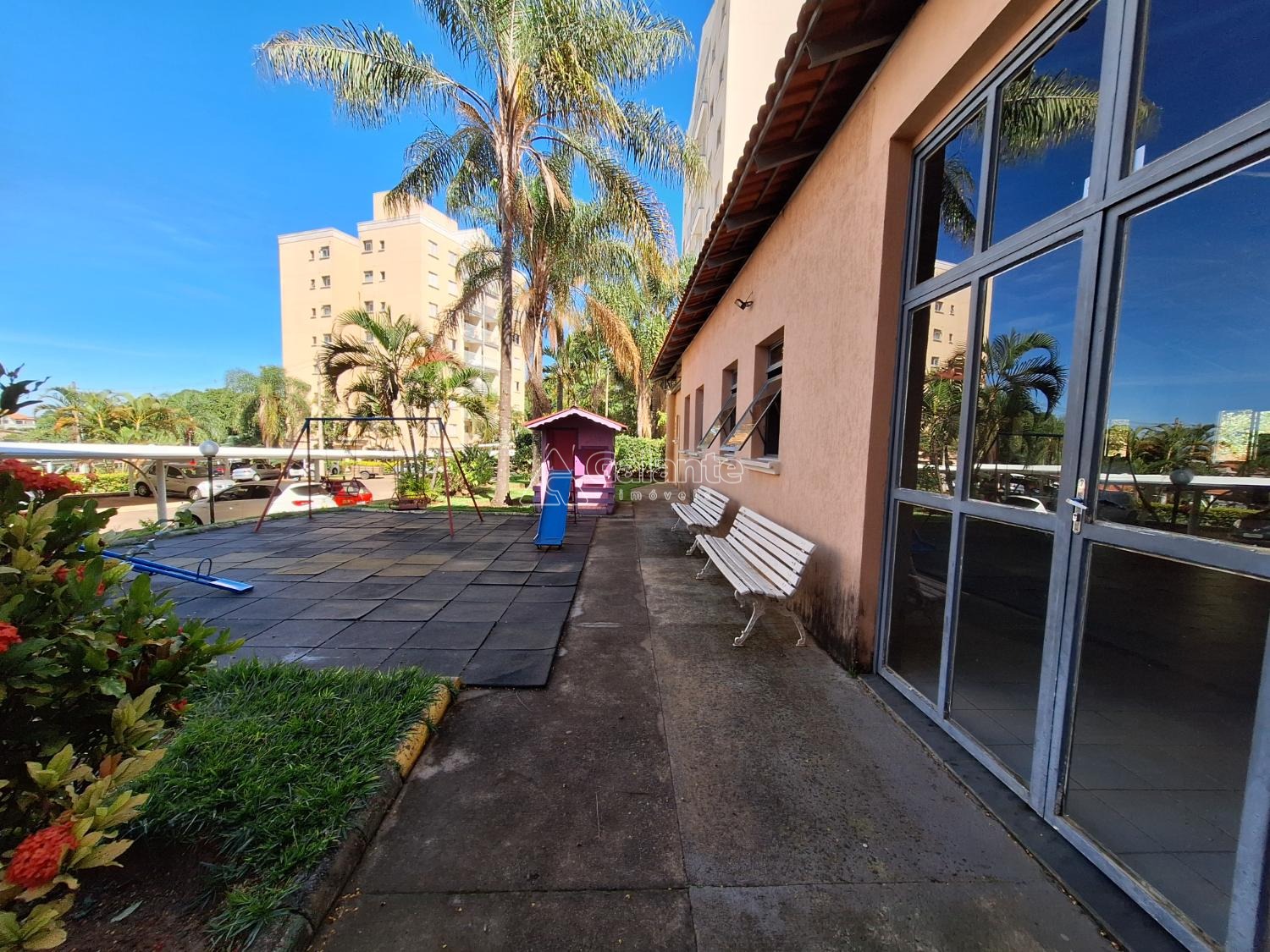 ótimo apartamento térreo com dois dormitórios com ventilador de teto, sala de jantar e tv com ventilador de teto e sacada piso laminado, cozinha planejada, área de serviço com armários, uma vaga coberta. portaria 24 horas presencial, área de lazer com quadra, playground e salão de festas.