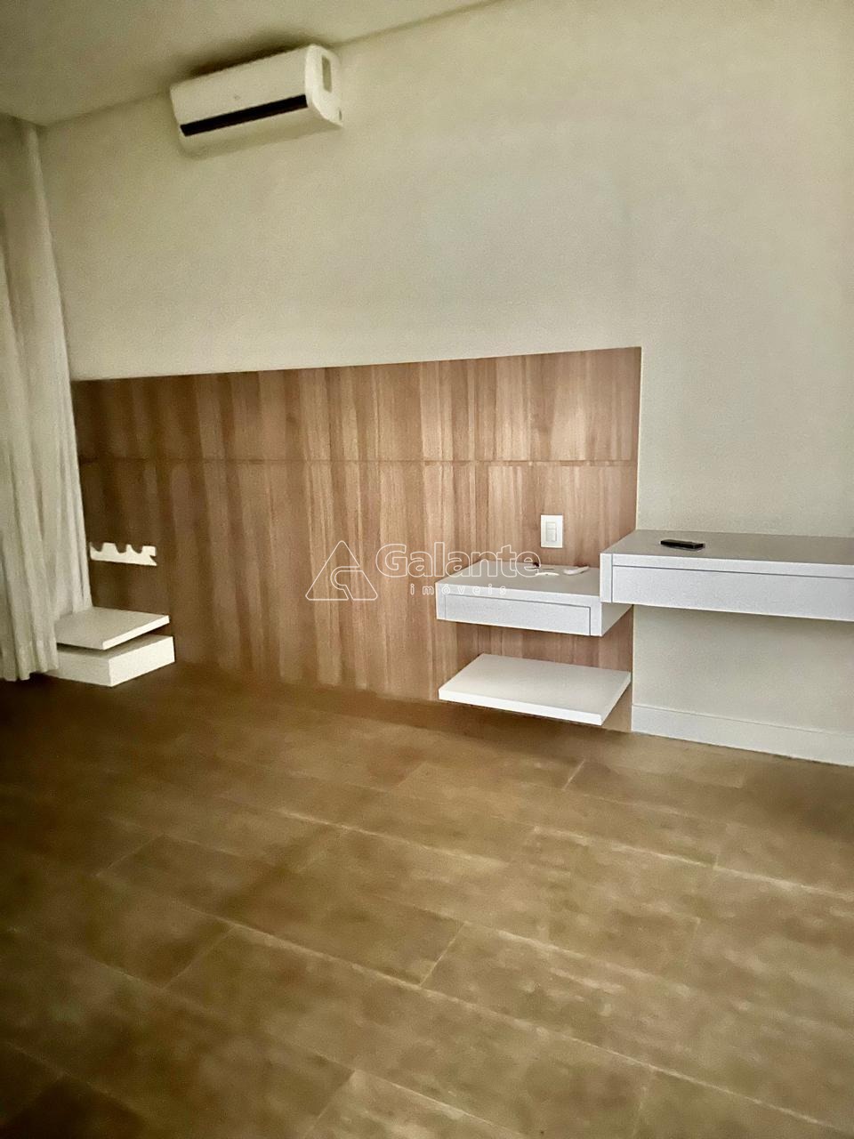 Piso com acabamento de madeira.
