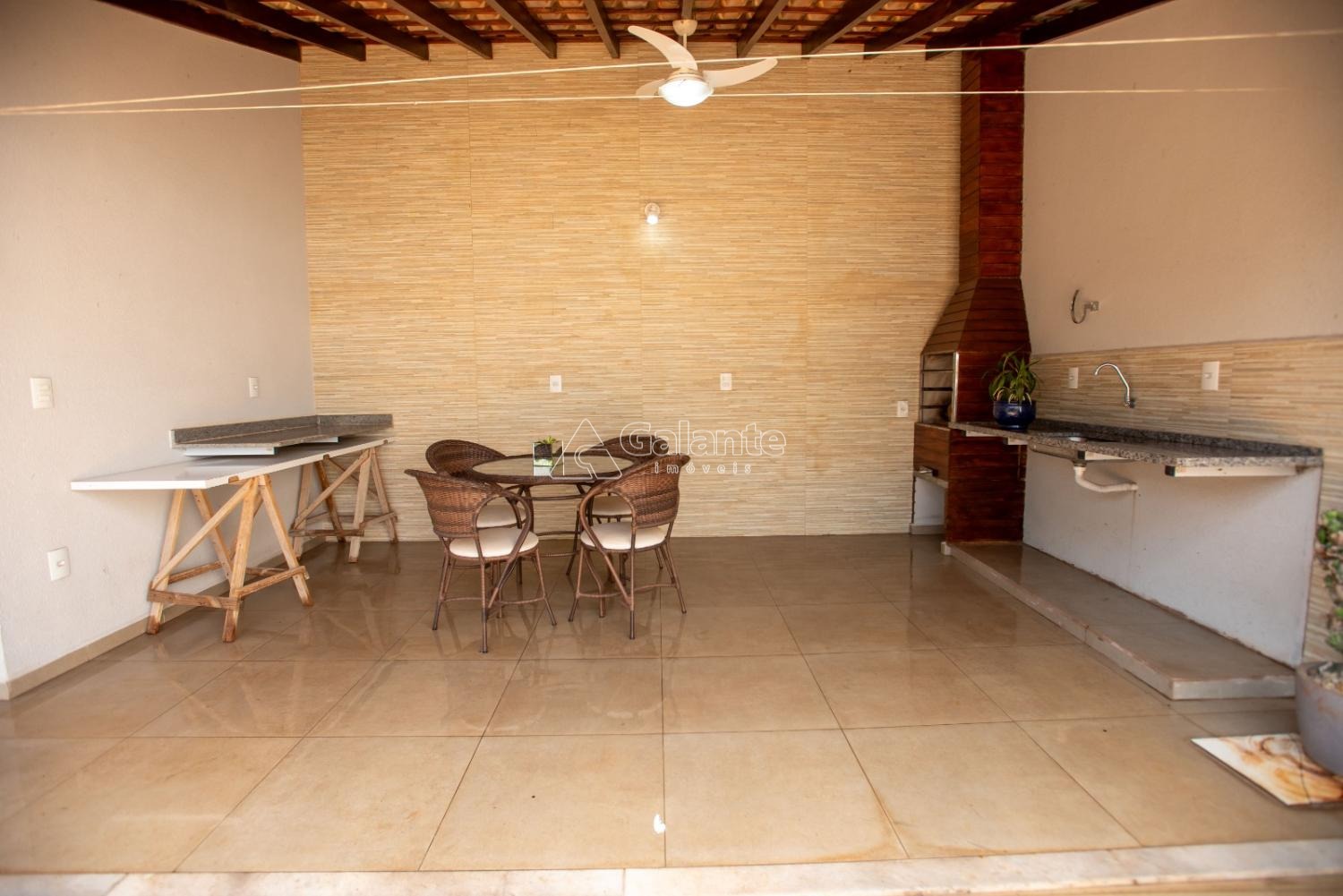 Possui área de lazer com churrasqueira e quintal.