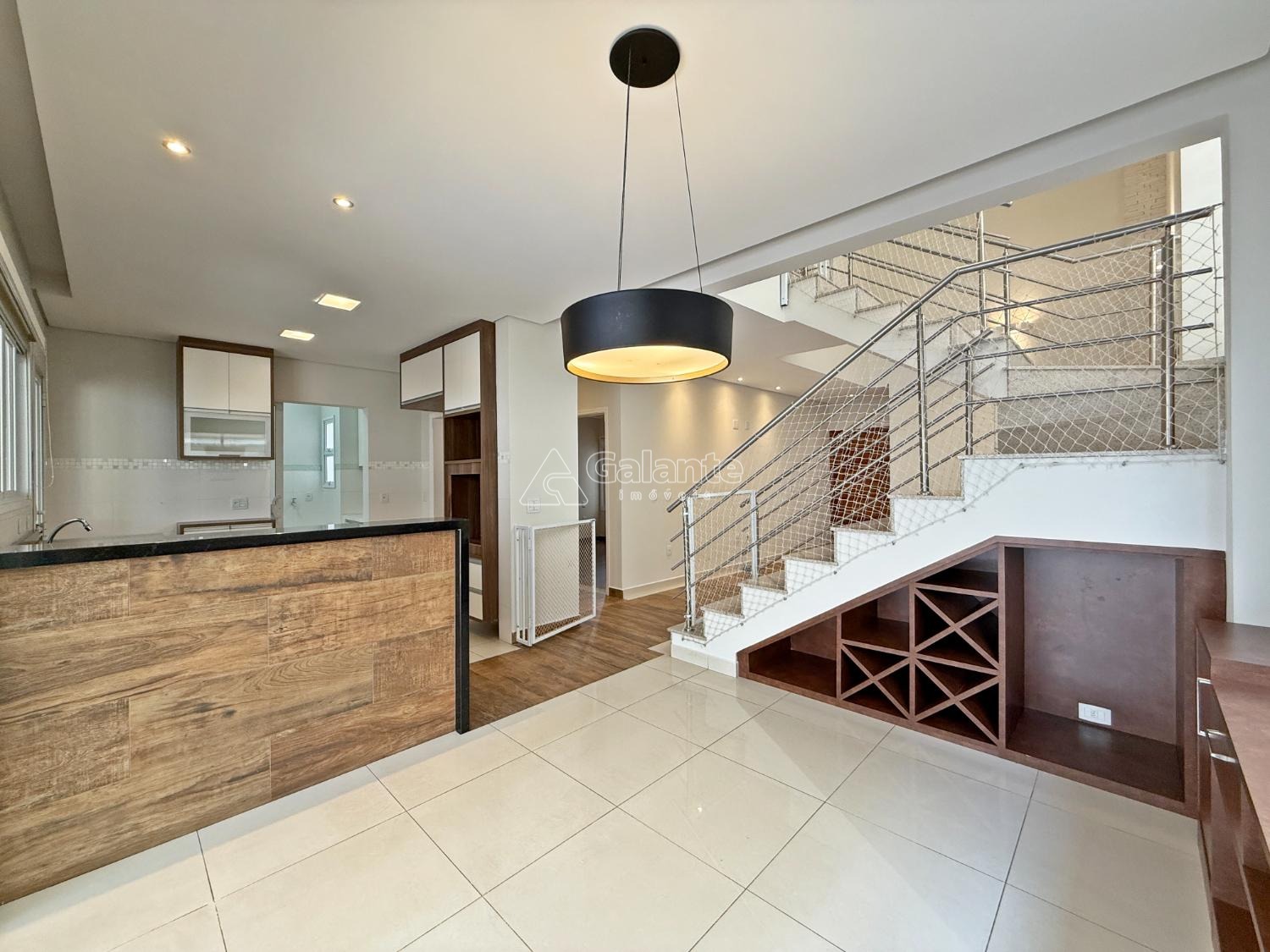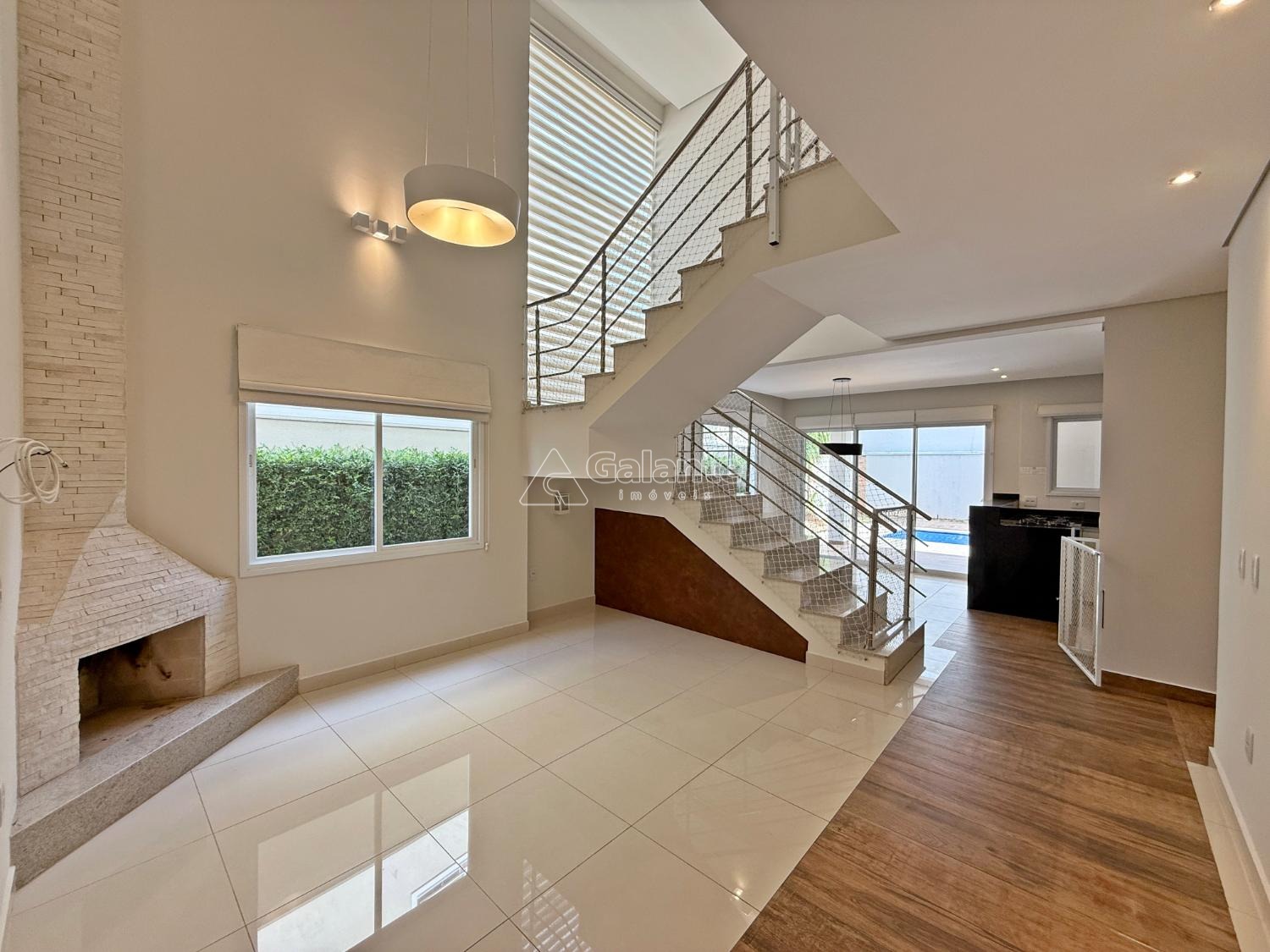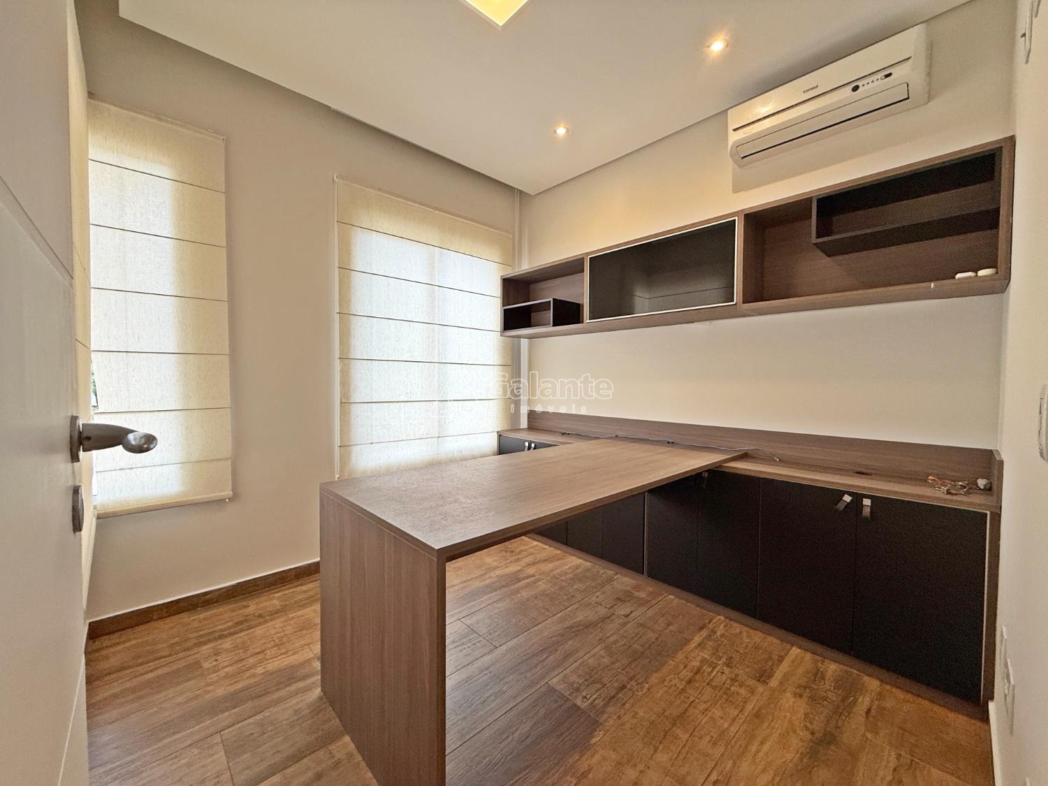 Piso térreo: 1 suíte com closet, sala 2 ambientes, lareira, escritório, lavabo, cozinha americana planejada, cooktop, despensa, lavanderia, quintal, piscina aquecida, espaço gourmet, jardim com paisagismo e irrigação automática, 4 vagas de garagem.