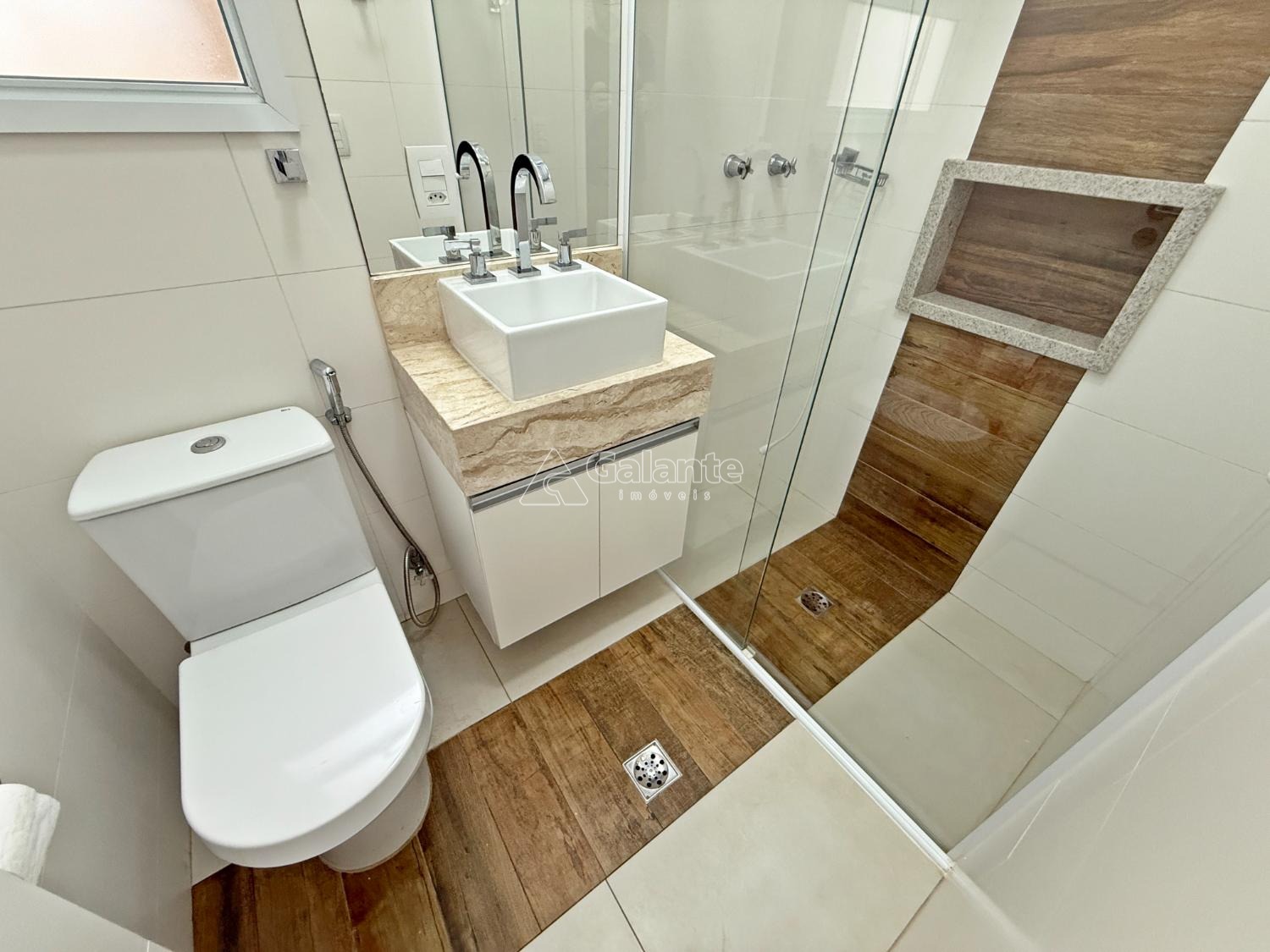 Piso superior: 3 quartos, sendo 3 suítes, com closet, ar condicionado, sacada, armários planejados.