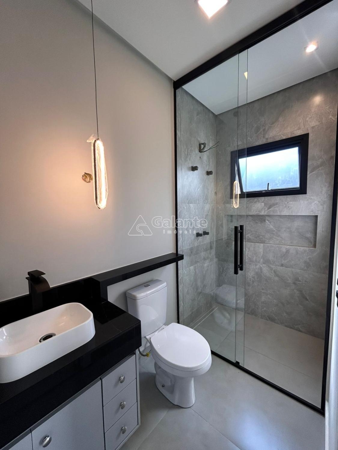 São 132m2 com 3 suítes sendo uma delas master com closet e box até o teto, sala de estar e jantar integradas com pé direito duplo, cozinha gourmet com ilha, cooktop, forno elétrico, coifa e churrasqueira, 4 banheiros e 2 vagas de garagem.