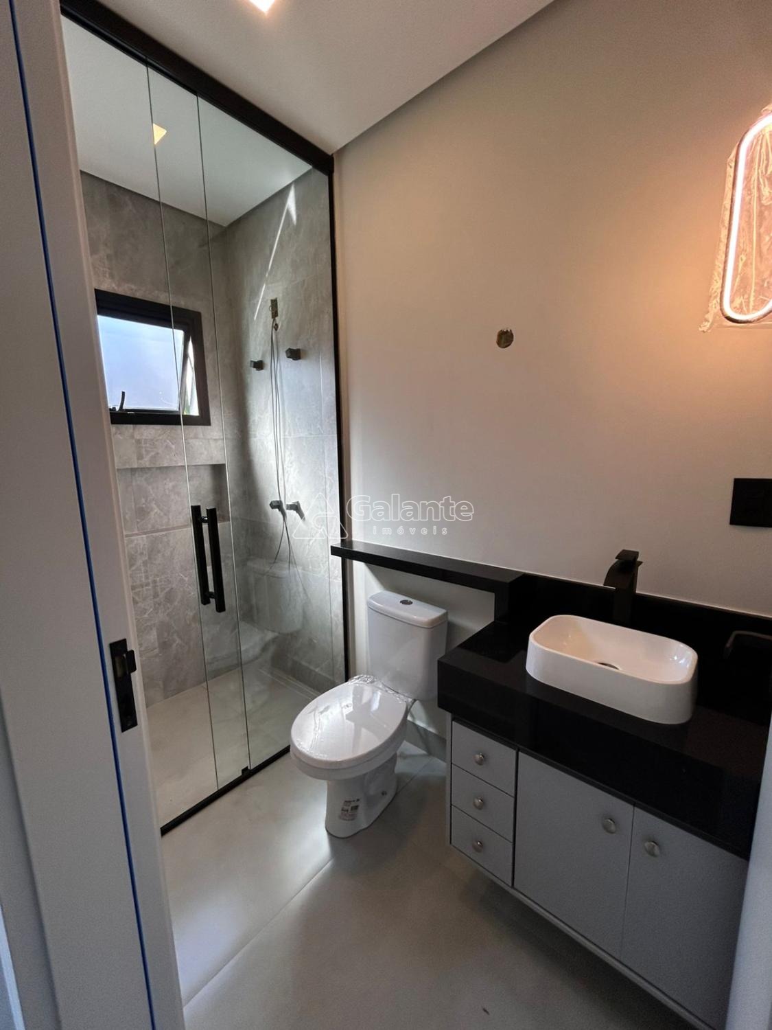 A casa conta com porcelanato nas salas, cozinha, banheiros e quintal, esquadrias em alumínio e bancadas em pedra e possui previsão para ar-condicionado e sistema de água quente.