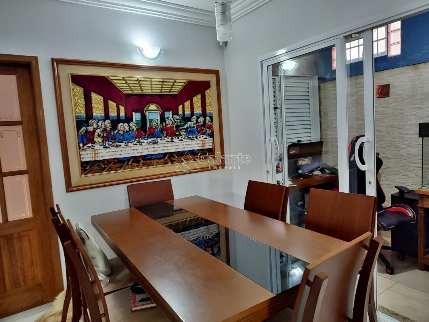 Casa térrea com 3 quartos sendo 1 suíte, armários planejados, sala para 2 ambientes, lavabo, cozinha planejada, cooktop, forno, despensa, área de serviço, quintal, piscina, churrasqueira, 4 vagas de garagem portão eletrônico.