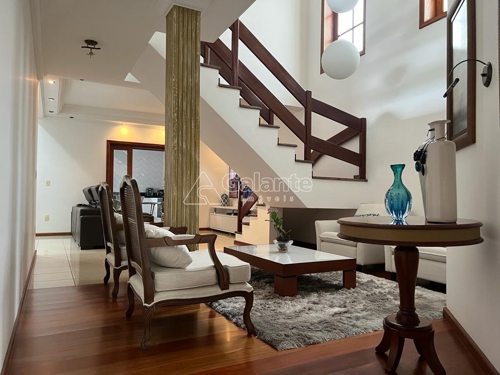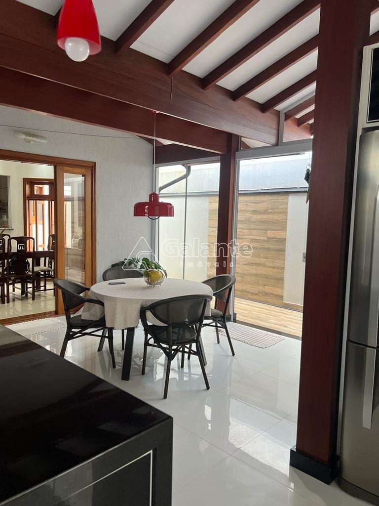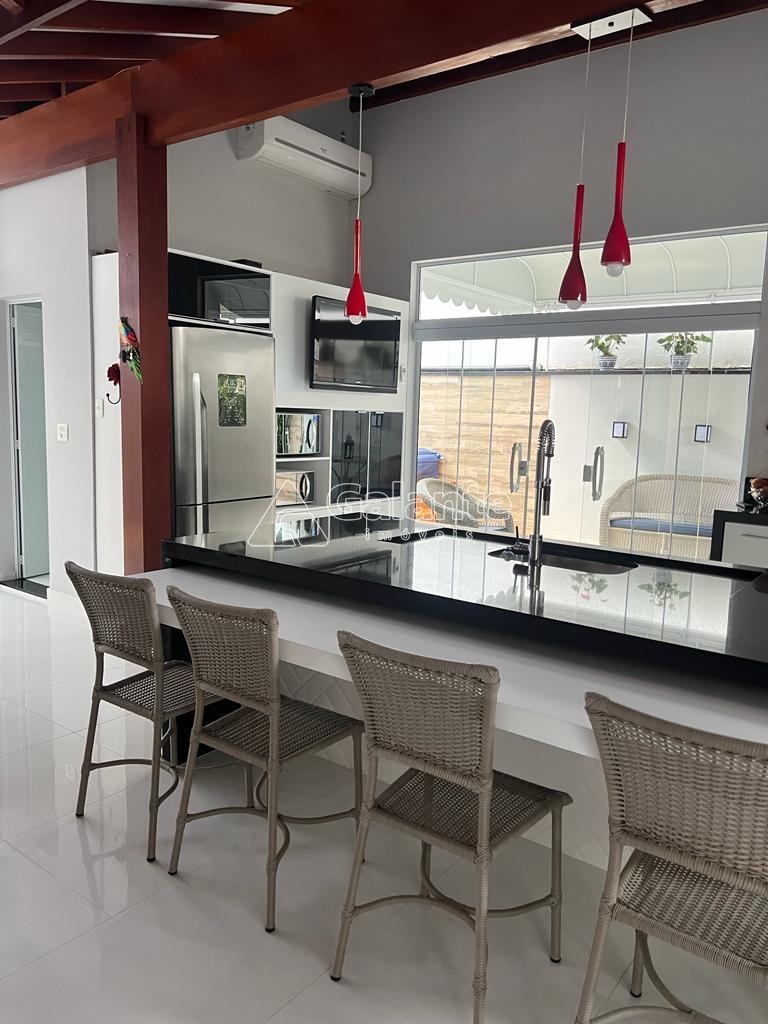 Casa com 280m2 de área construída, 4 quartos sendo 1 suíte, sala de estar, sala de jantar, sala de tv, escritório, lavabo, cozinha planejada, área gourmet com churrasqueira, fogão à lenha, despensa, total de 4 banheiros, lavanderia, varanda, armários. planejados, aquecedor solar. 5 vagas de garagem, sendo 2 cobertas e 3 descobertas.