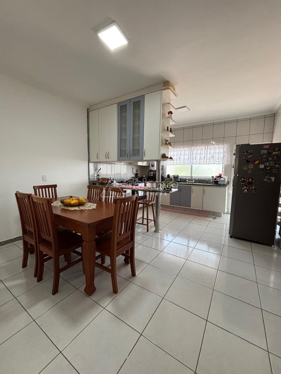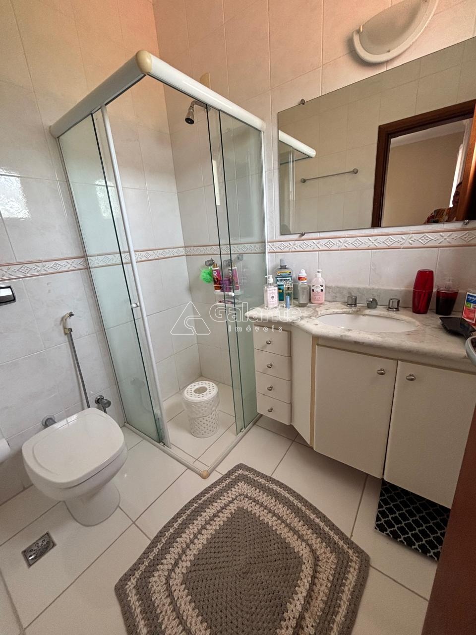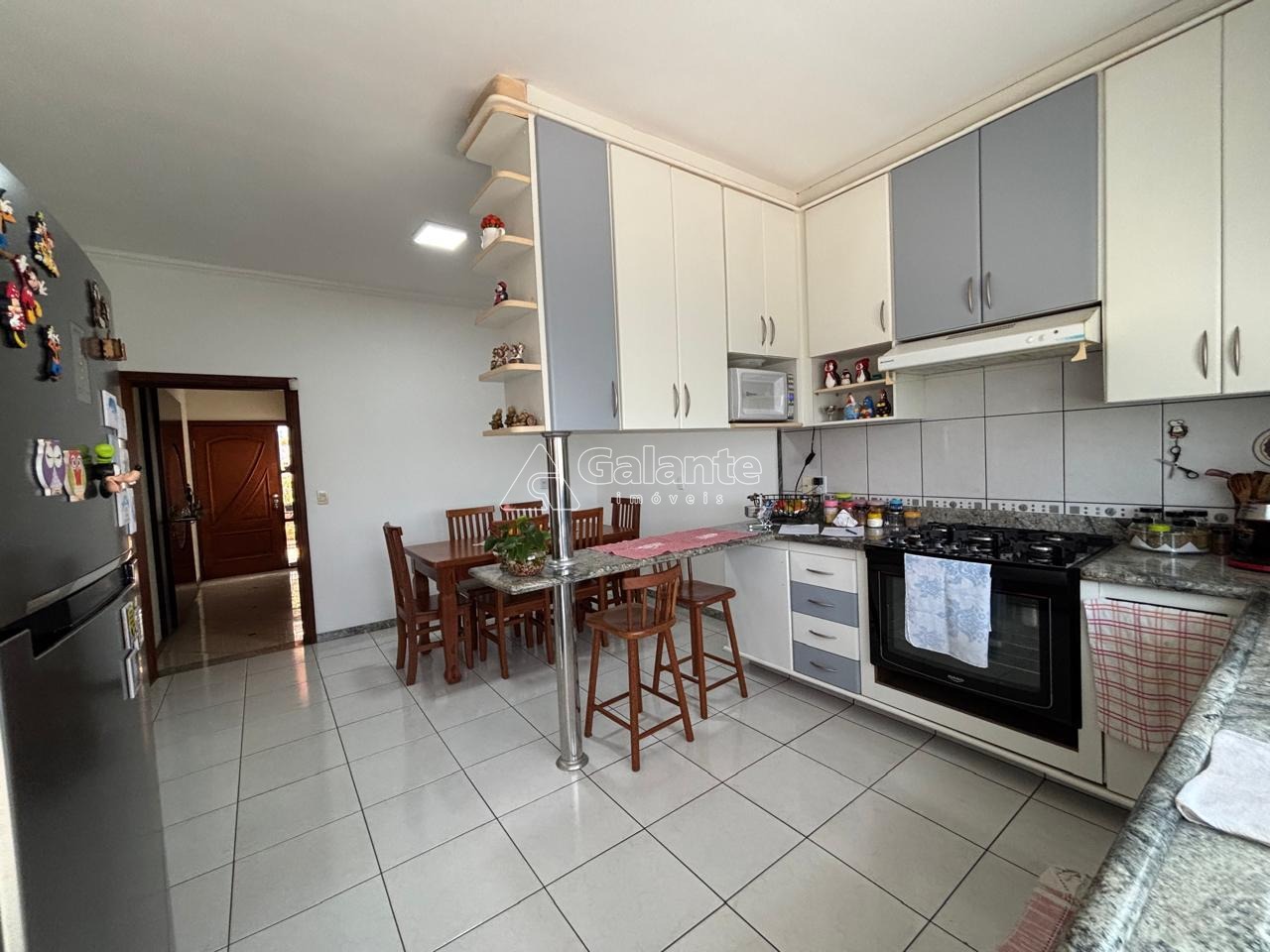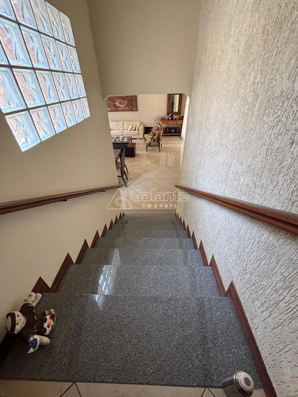 No primeiro piso, que está em nível com as garagens, ficam o hall de entrada, Adega, copa, cozinha, depósito, área de serviços, acesso para a varanda gourmet e banheiro de serviços. No segundo piso há uma generosa sala com acesso ao terraço e com espaço para a formação de até 4 ambientes. No piso superior fica a área íntima onde um dos 4 quartos está sendo usado como sala íntima com TV.
