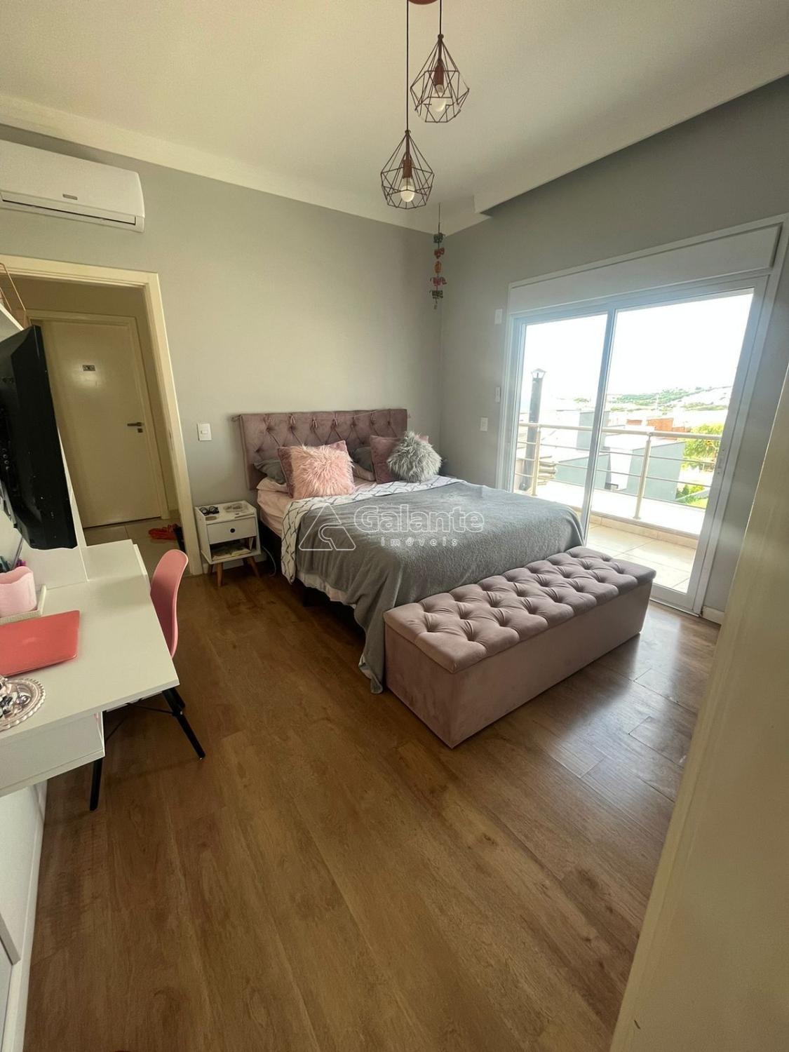 São 252 m² com 3 suítes na parte superior sendo 2 closet, amplo living 2 ambientes com pé direito alto integrada à cozinha planejada, despensa, área de serviço, um dormitório/escritório no piso inferior, lavabo, ampla área gourmet com churrasqueira e ilha em mármore, jardim de inverno lateral, ótima área de lazer com piscina com ofurô e 4 vagas de garagem.