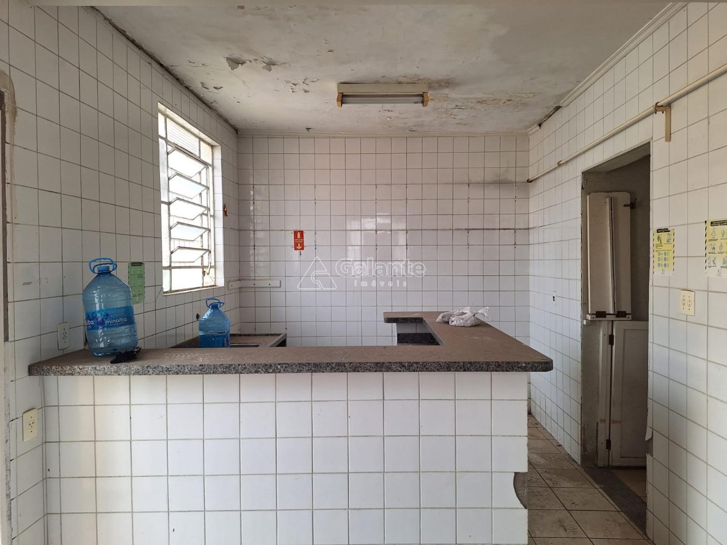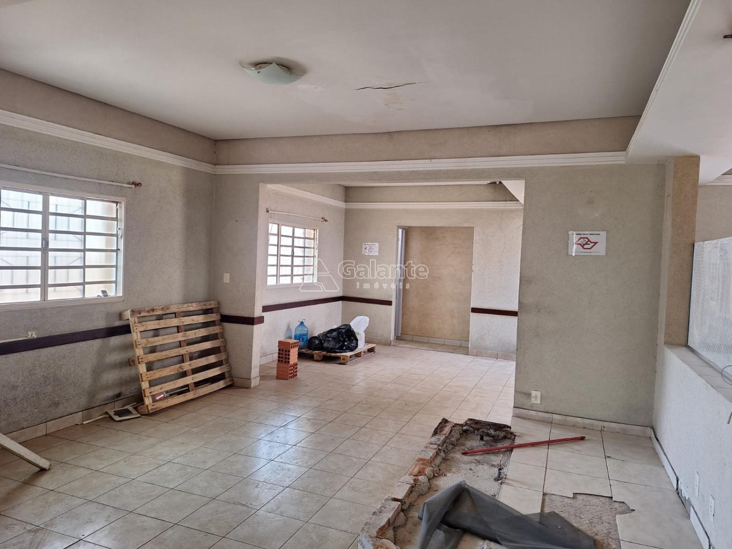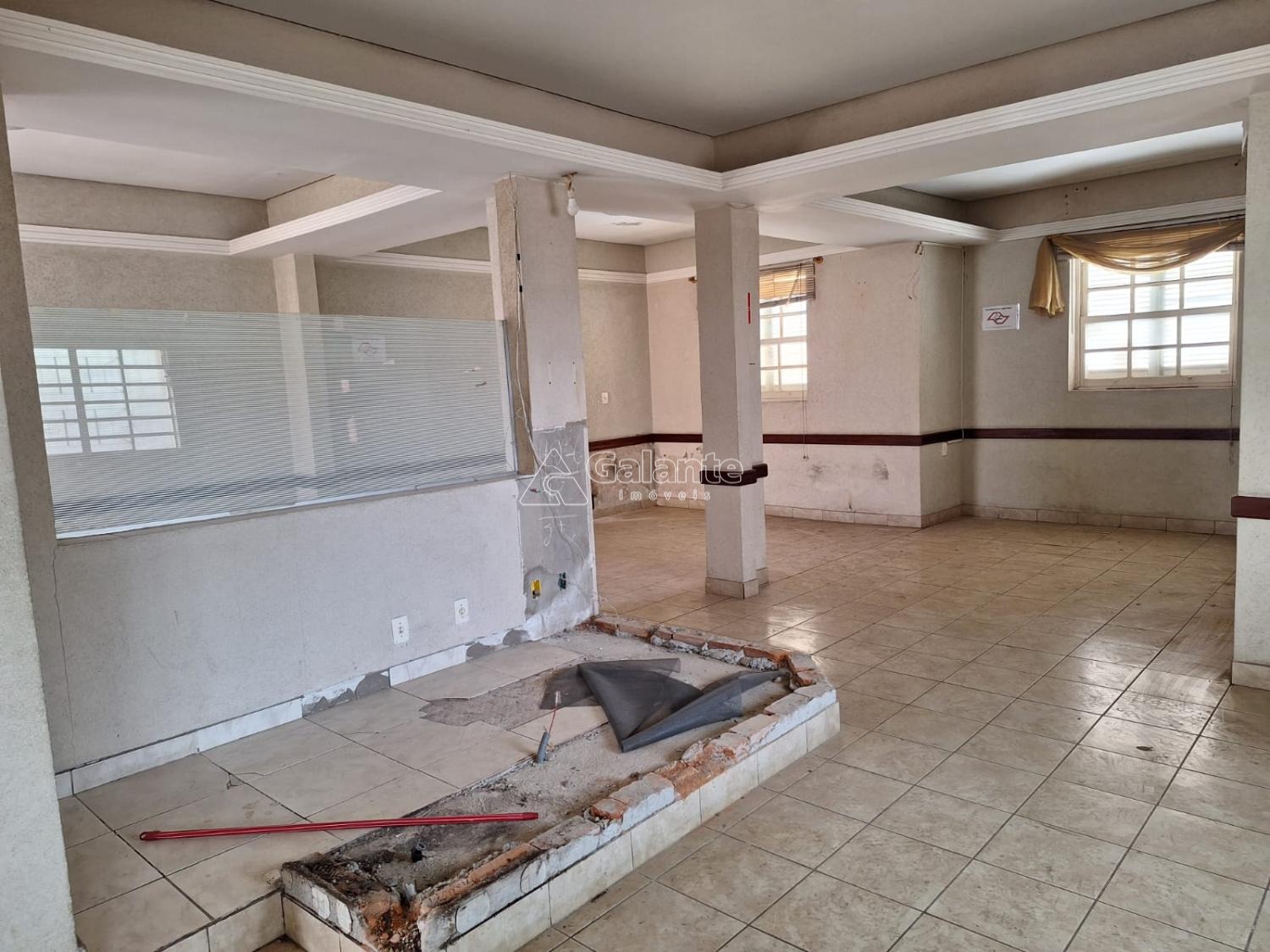 Salão em vao livre com piso ceramico com cozinha e banheiro masculino e feminino quatro vagas frontal e mais dez no fundos area construida 177 terreno 356.