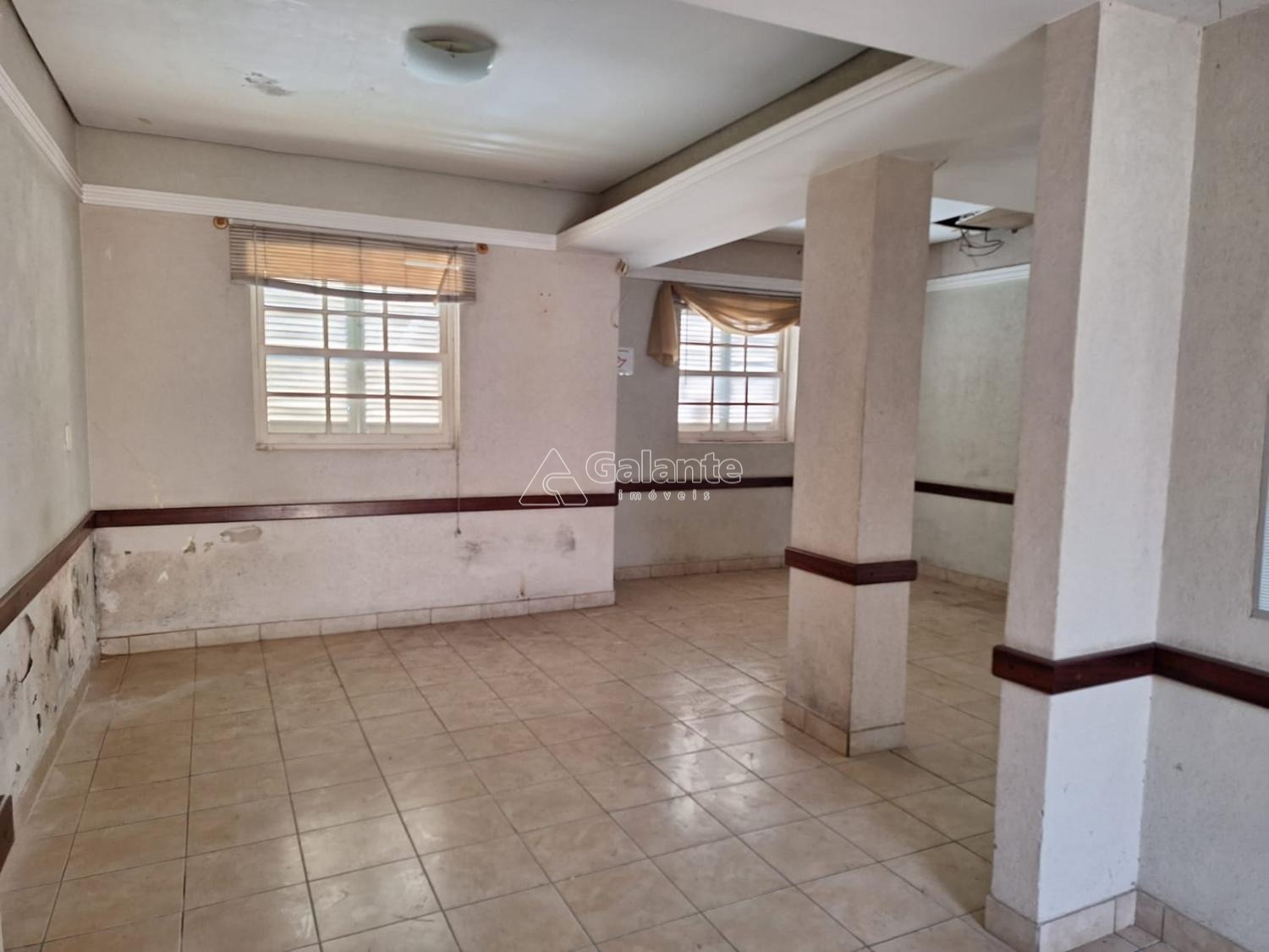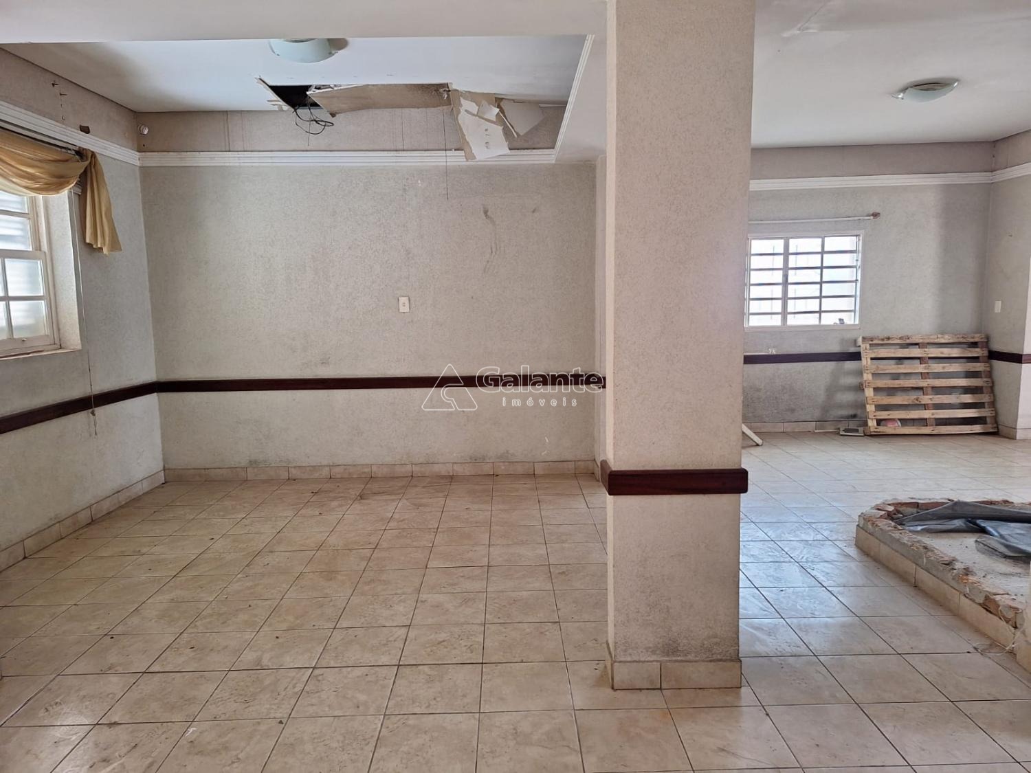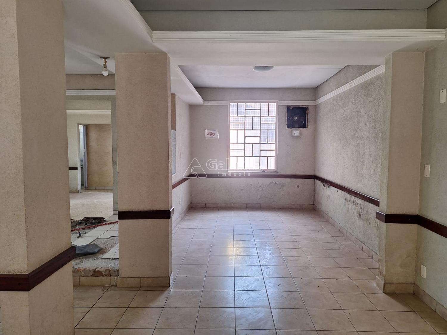 Salão em vao livre com piso ceramico com cozinha e banheiro masculino e feminino quatro vagas frontal e mais dez no fundos area construida 177 terreno 356.