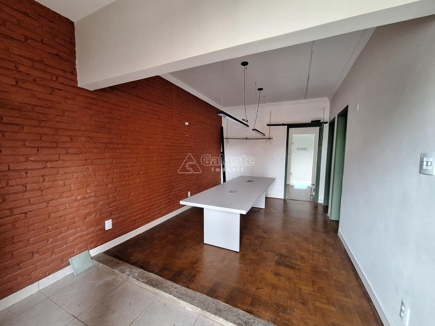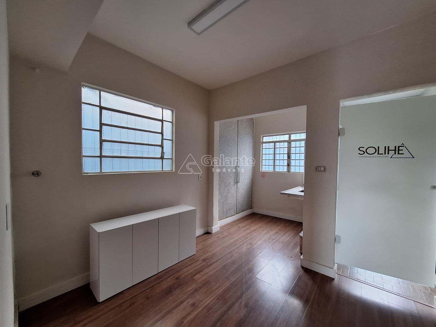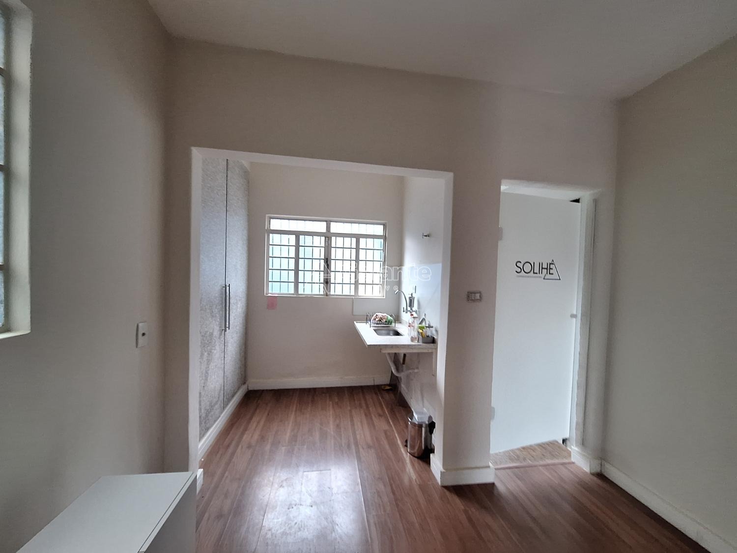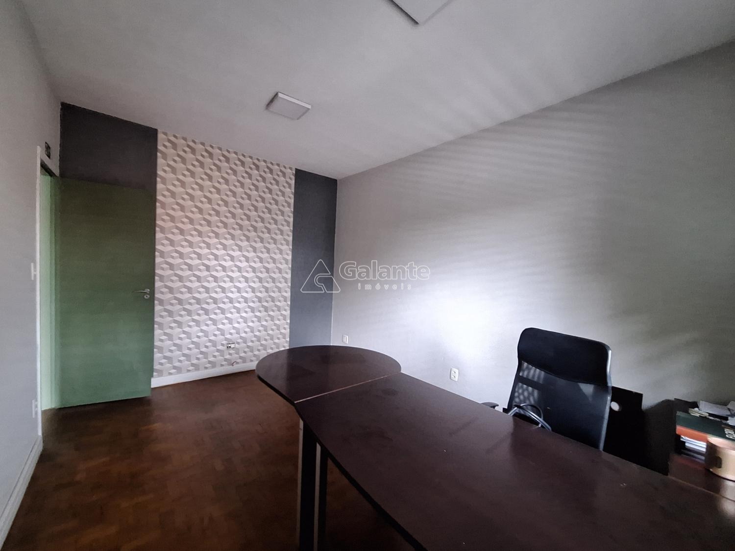 frente com quatro salas piso em taco e laminado com copa e dois banheiros.