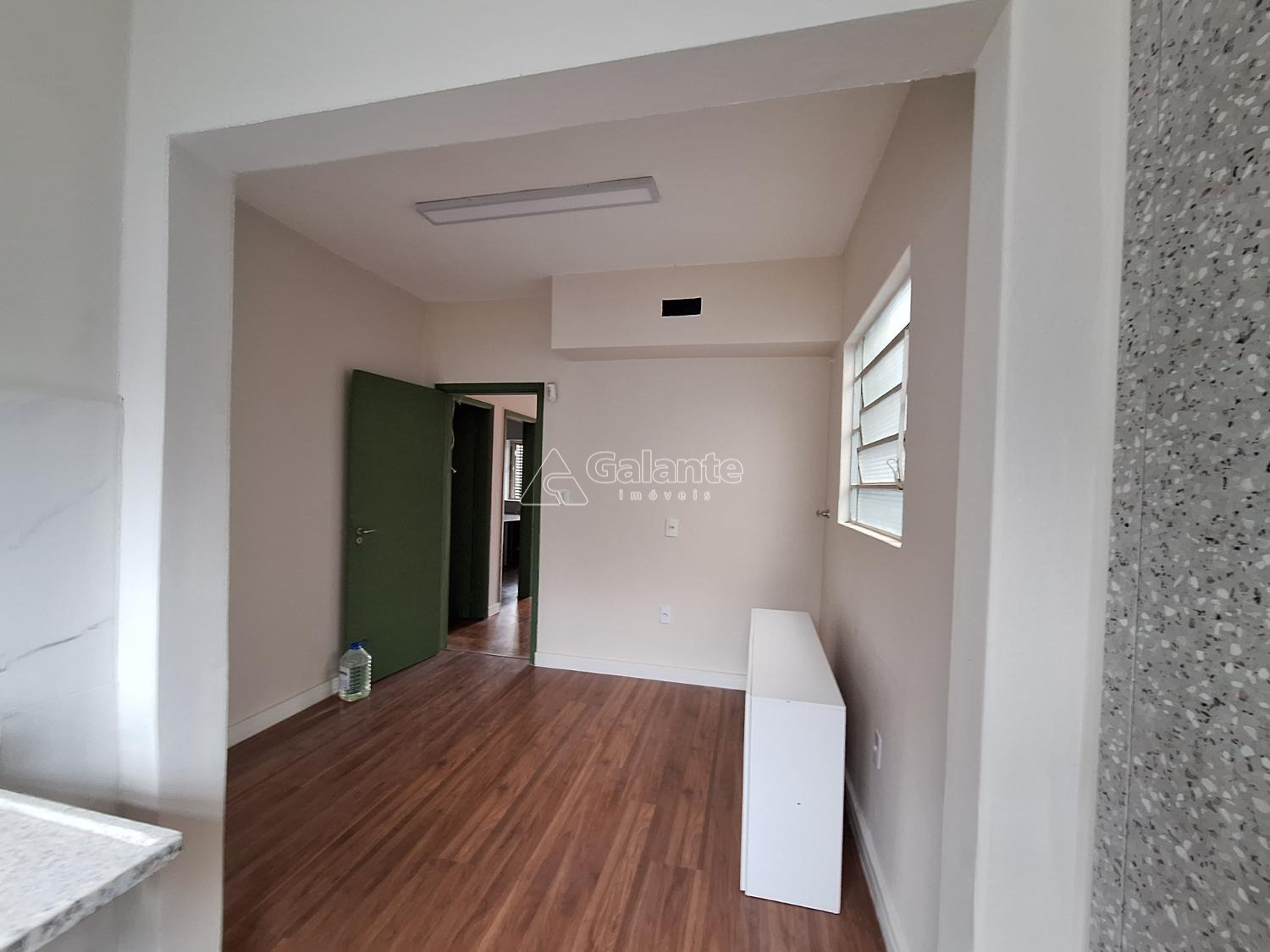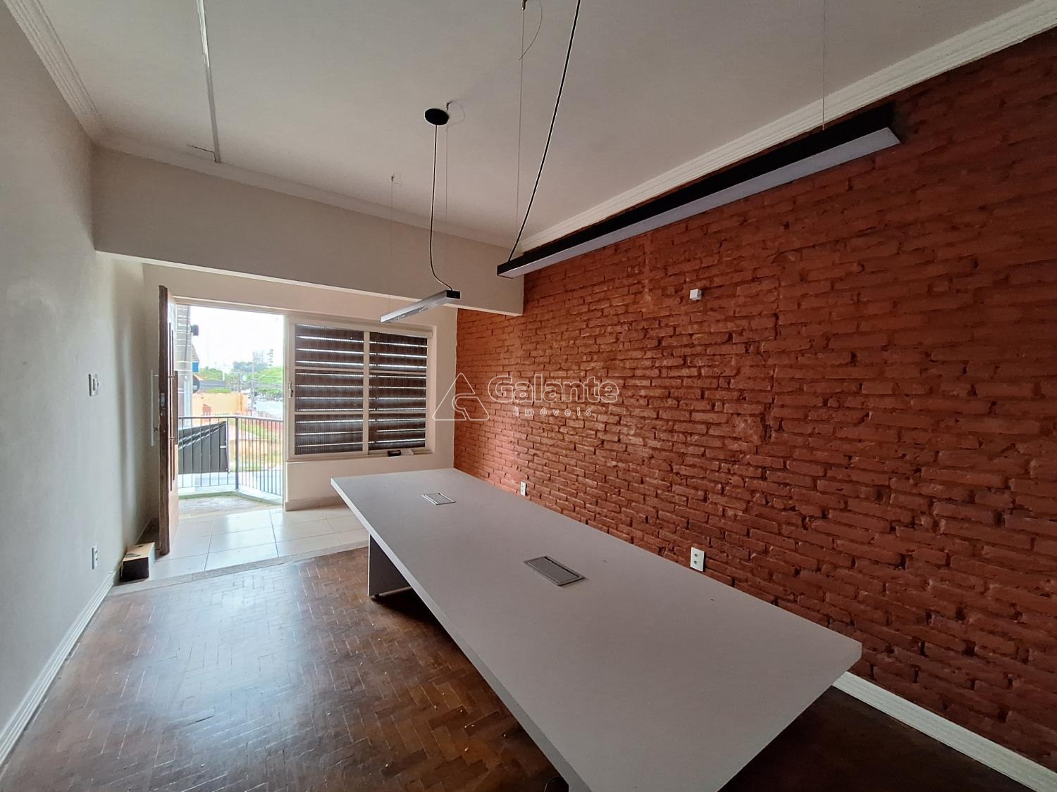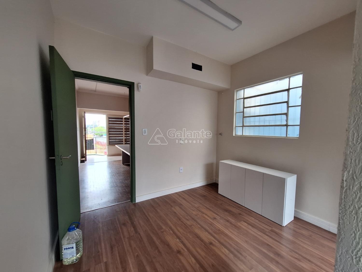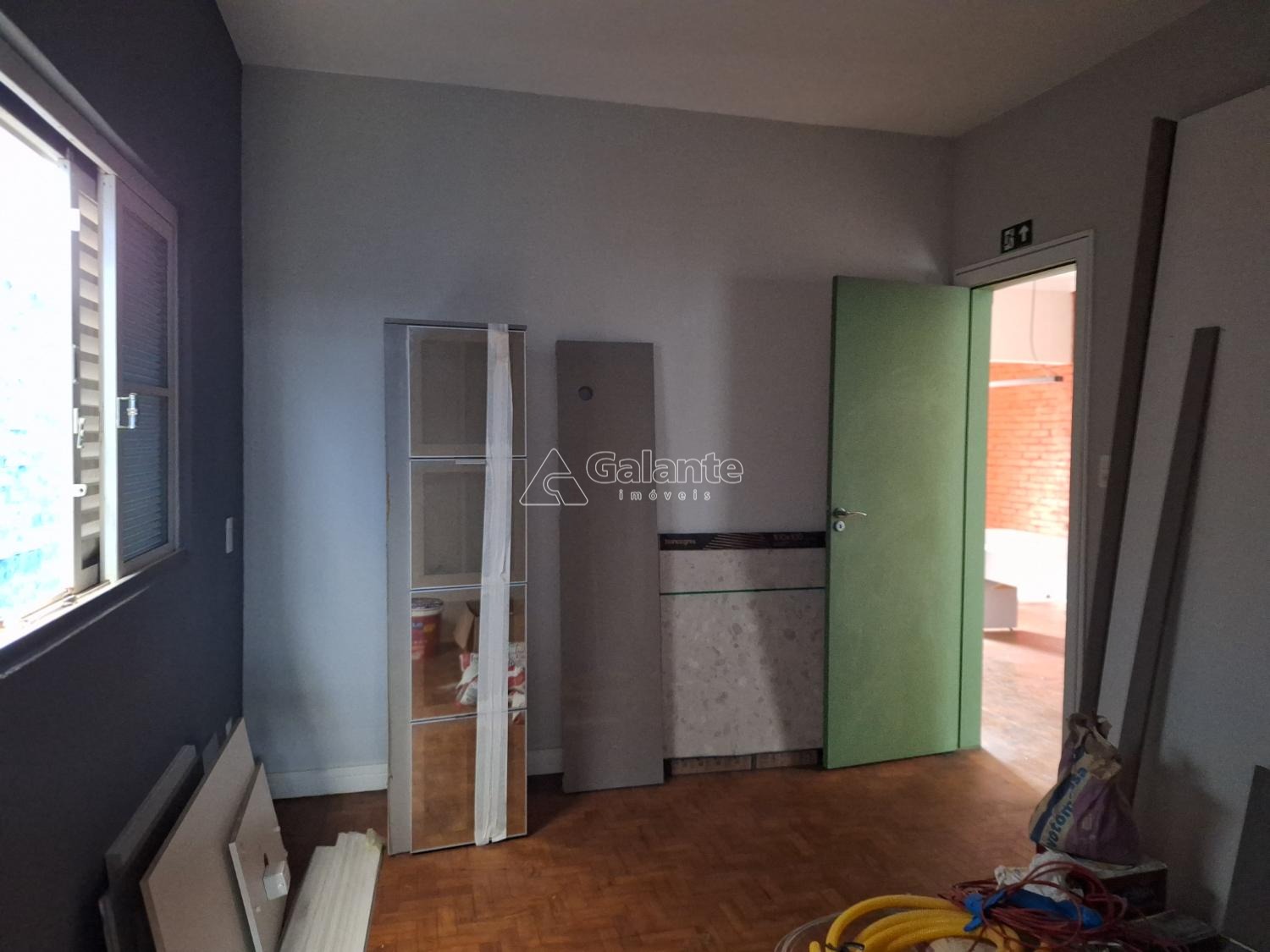 frente com quatro salas piso em taco e laminado com copa e dois banheiros.
