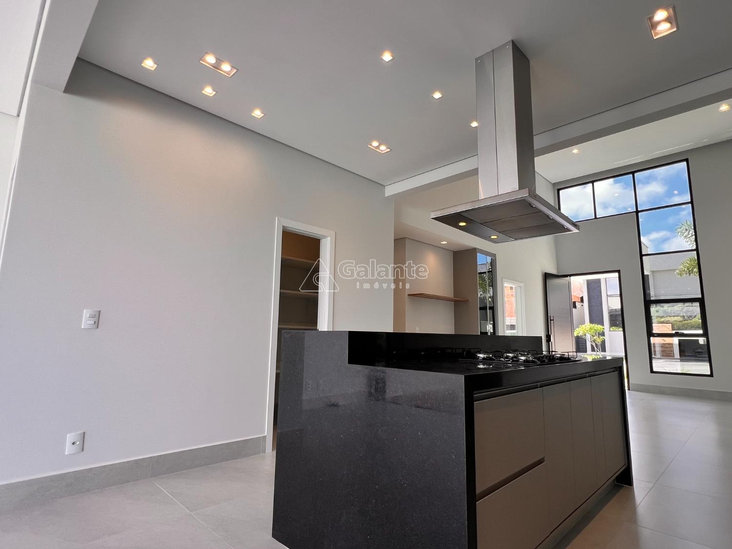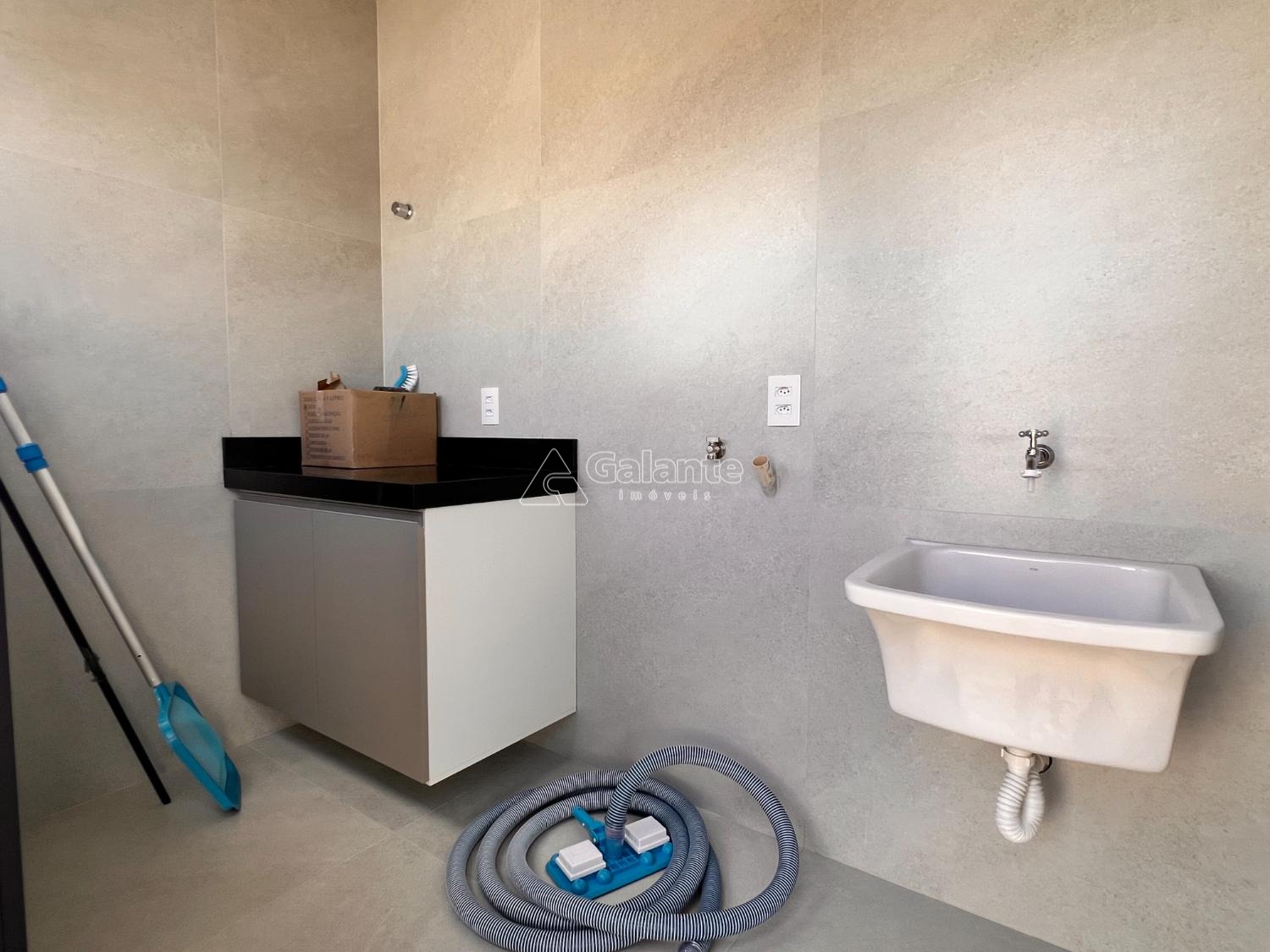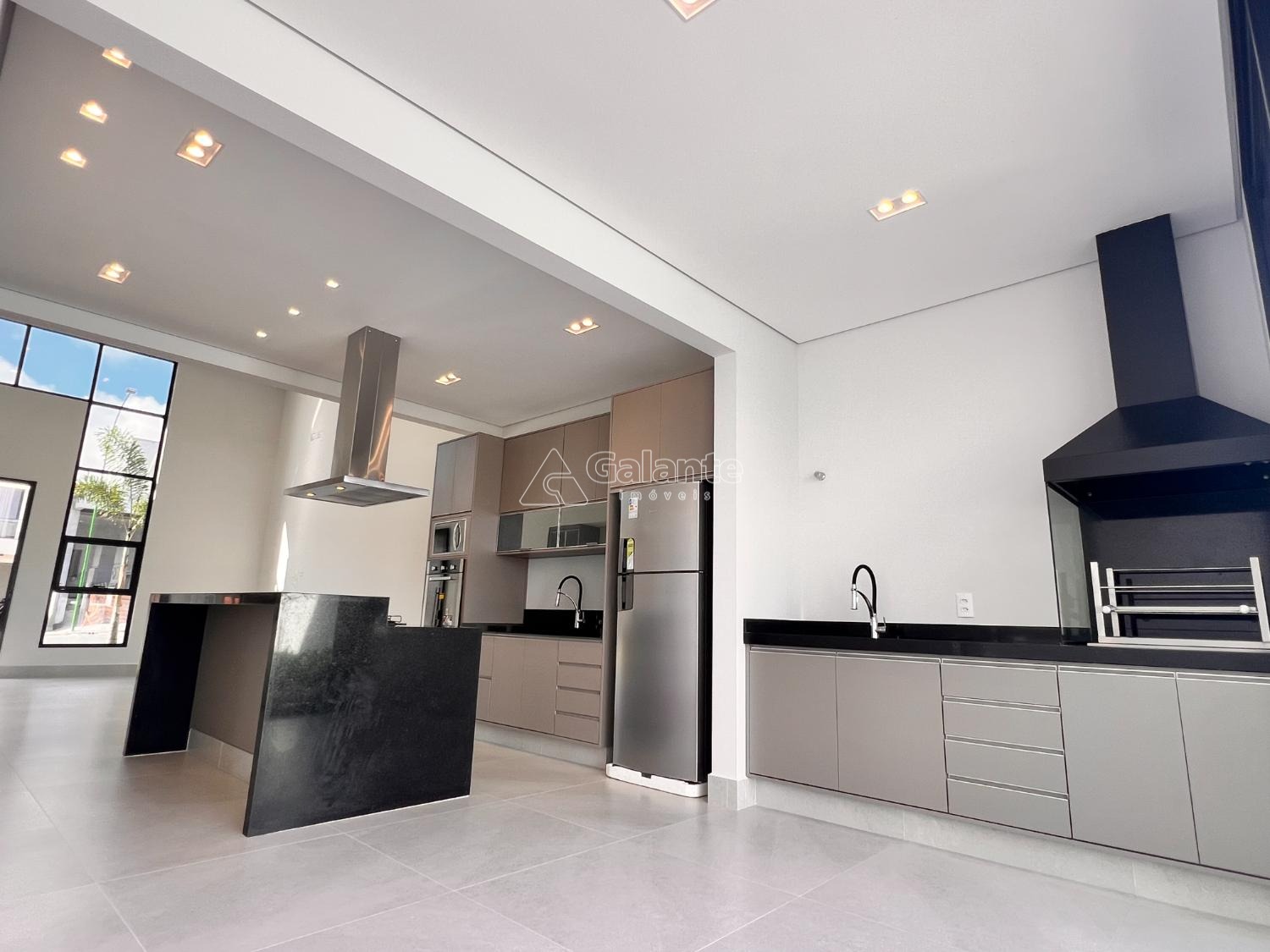 A casa conta ainda com espaço gourmet com armários planejados e churrasqueira gourmet,