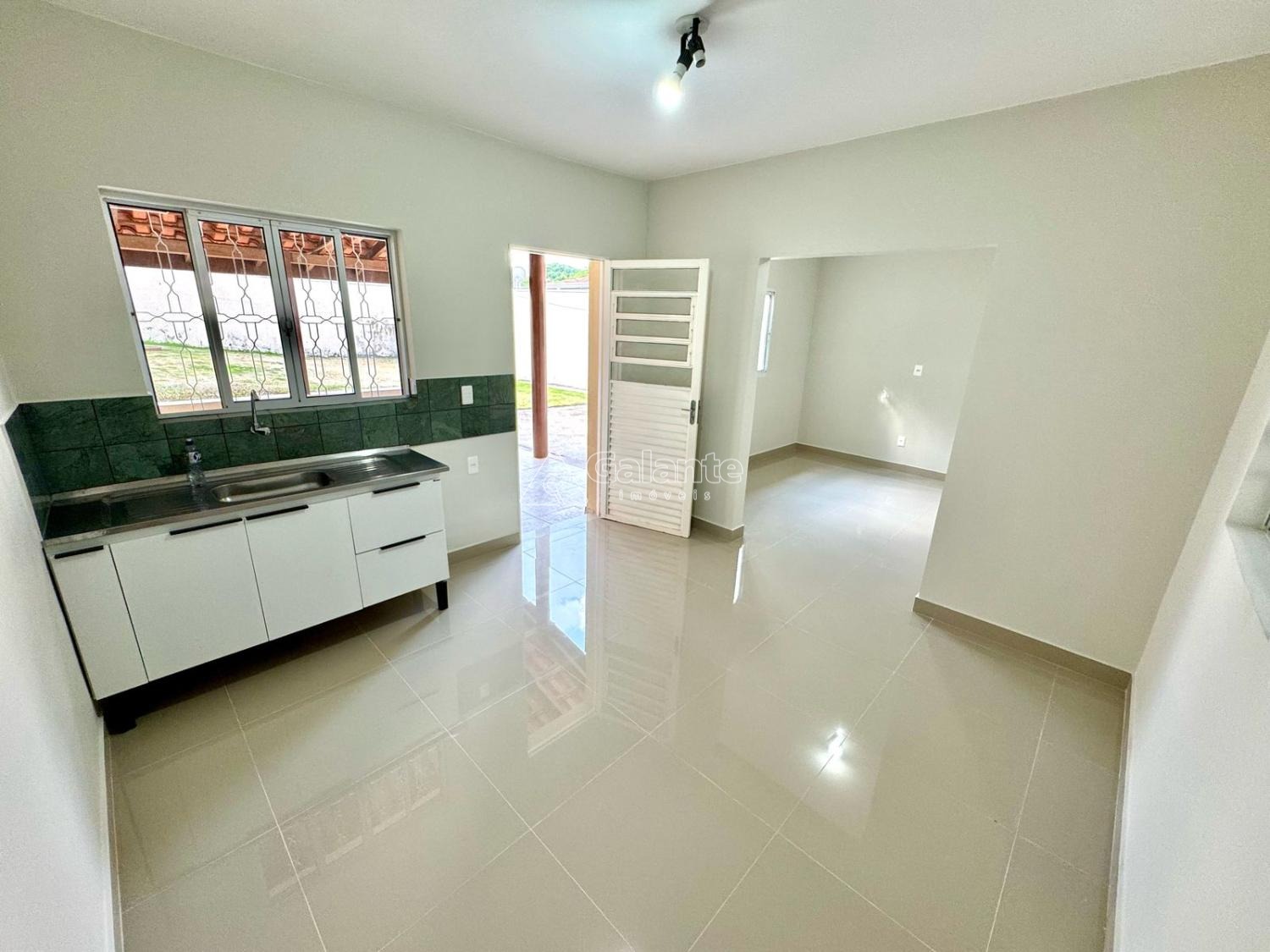 Casa térrea, com 2 quartos, piso porcelanato, sala de estar, copa, cozinha com armários, banheiro social, lavanderia, quintal, 3 vagas de garagem.