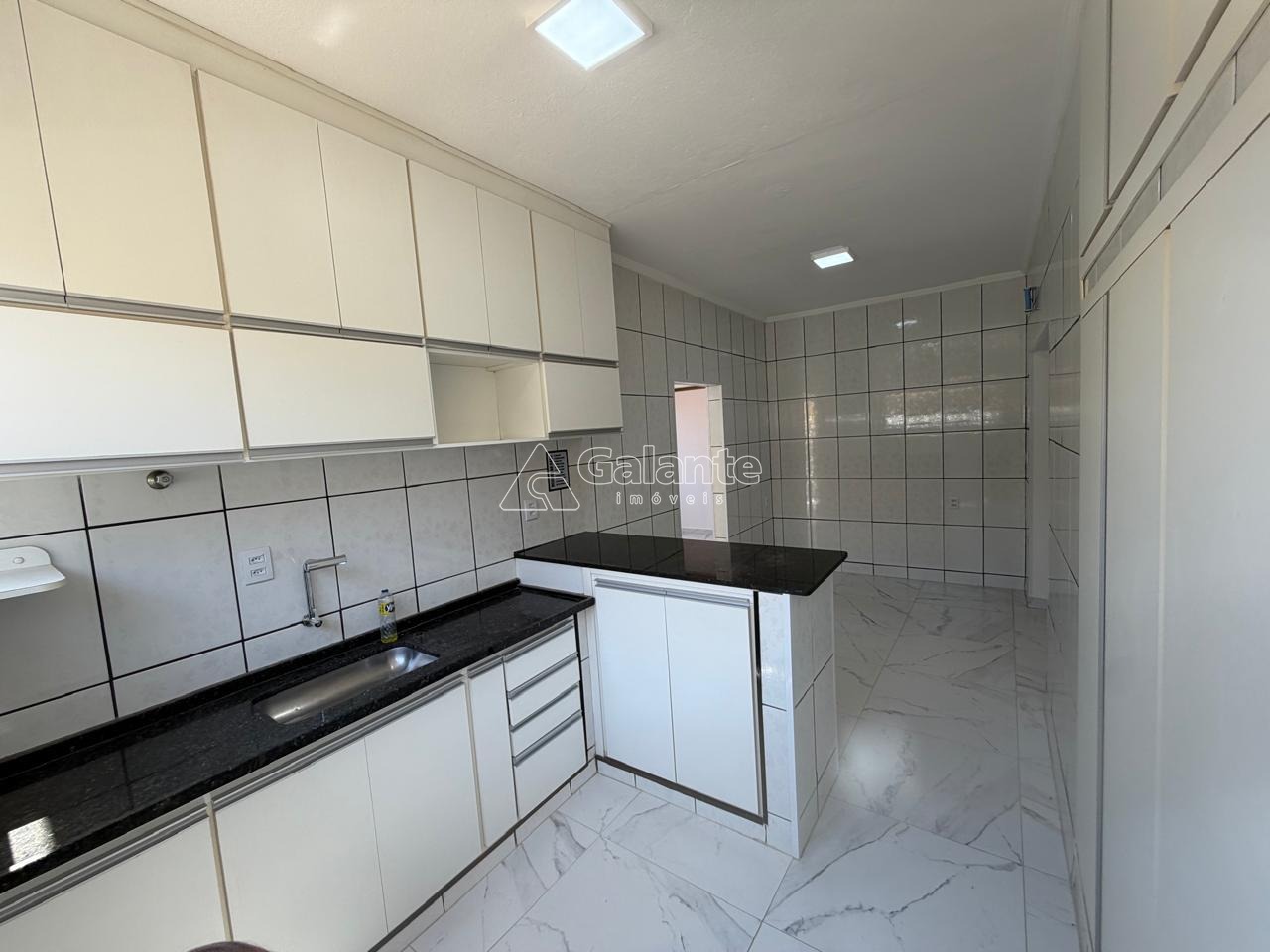 Casa da frente com 3 quartos sendo um deles com planejados, sala, 1 banheiro completo e 1 lavabo com pias de mármore, área de serviço, cozinha repleta de armários planejados e despensa.