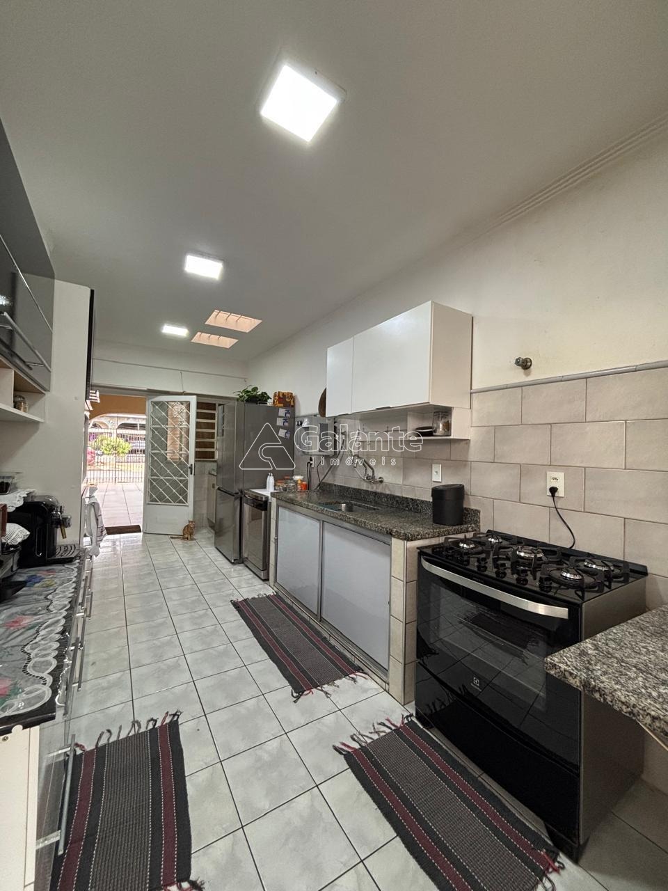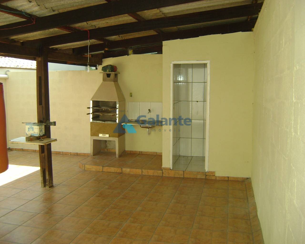 Sistema de alarme com cerca-elétrica, frente avarandada. Área de serviço (churrasqueira com pia e banheiro externos). 3 vagas.