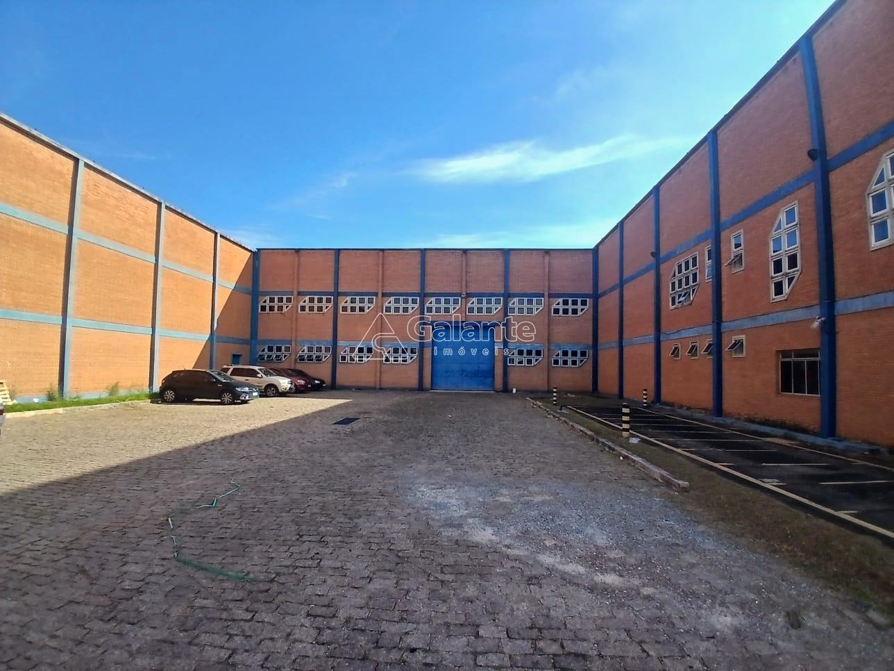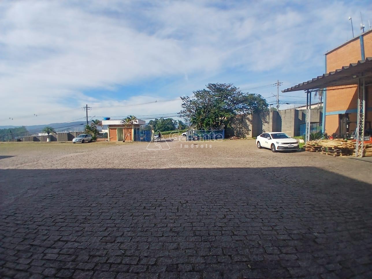 Galpão com pé direito 7 metros,piso apropriado para receber 3 toneladas por m², amplo espaço para manobrar carretas com espaço para estacionamento, não possui docas, portão com controle de acesso.