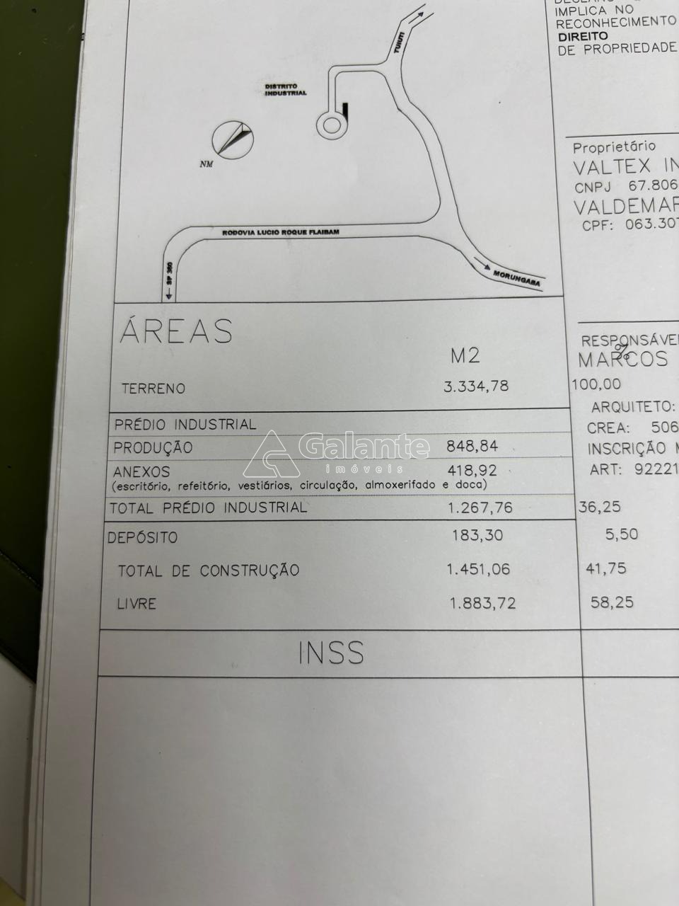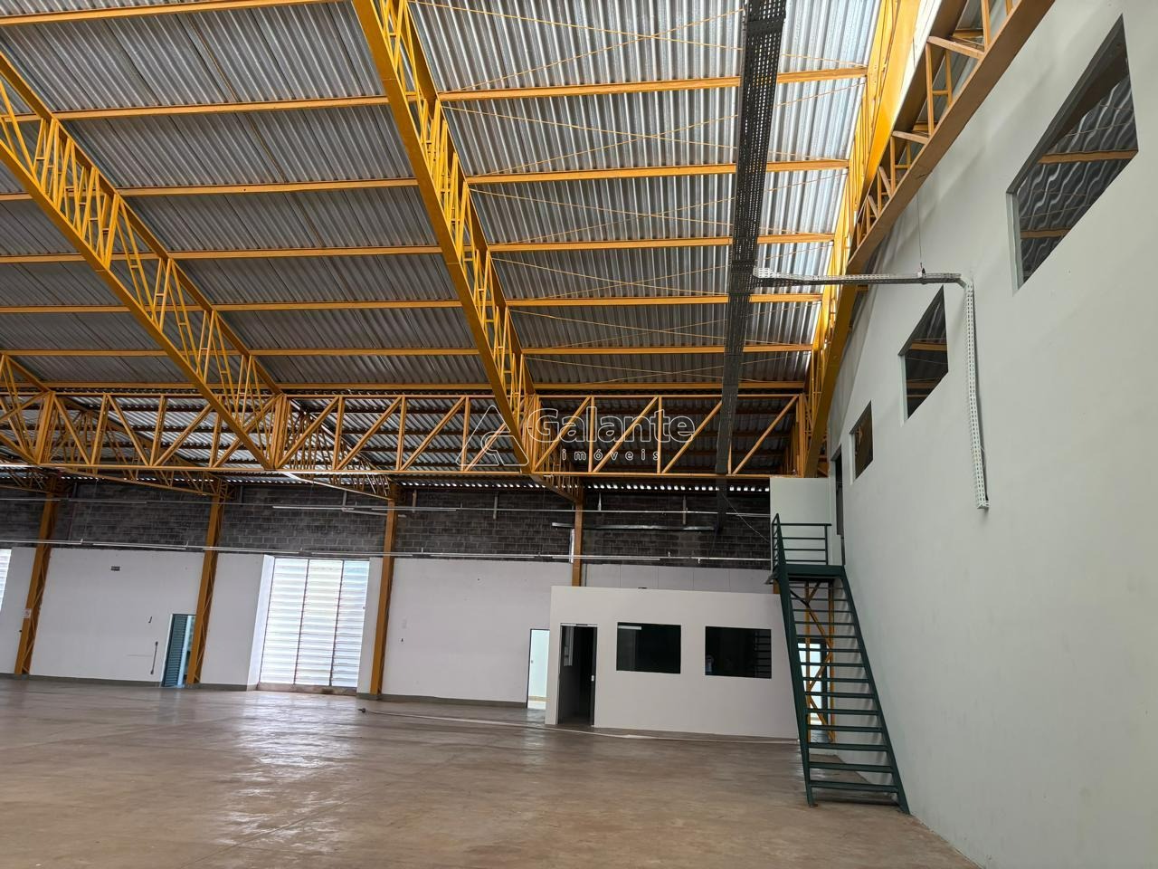 Predio novo, diferenciado, com 1451m² de galpão, com piso de concreto usinado de 12cm . Ambientes q podem servir de escritório, um no terreo e outro em cima. Tem almoxarifado com 183,30m², cozinha e 6 wcs, varias vagas de estacionamento. Portão de entrada para caminhão. Sobram em torno de 1880m² para ampliação. Esse galpão fica em um condominio.