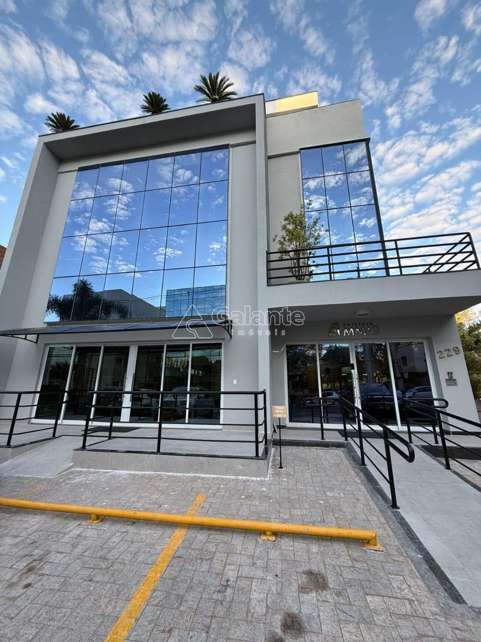 Salão todo mobiliado com divisões personalizadas, ar condicionados, 2 banheiros, uma vaga de garagem coberta.