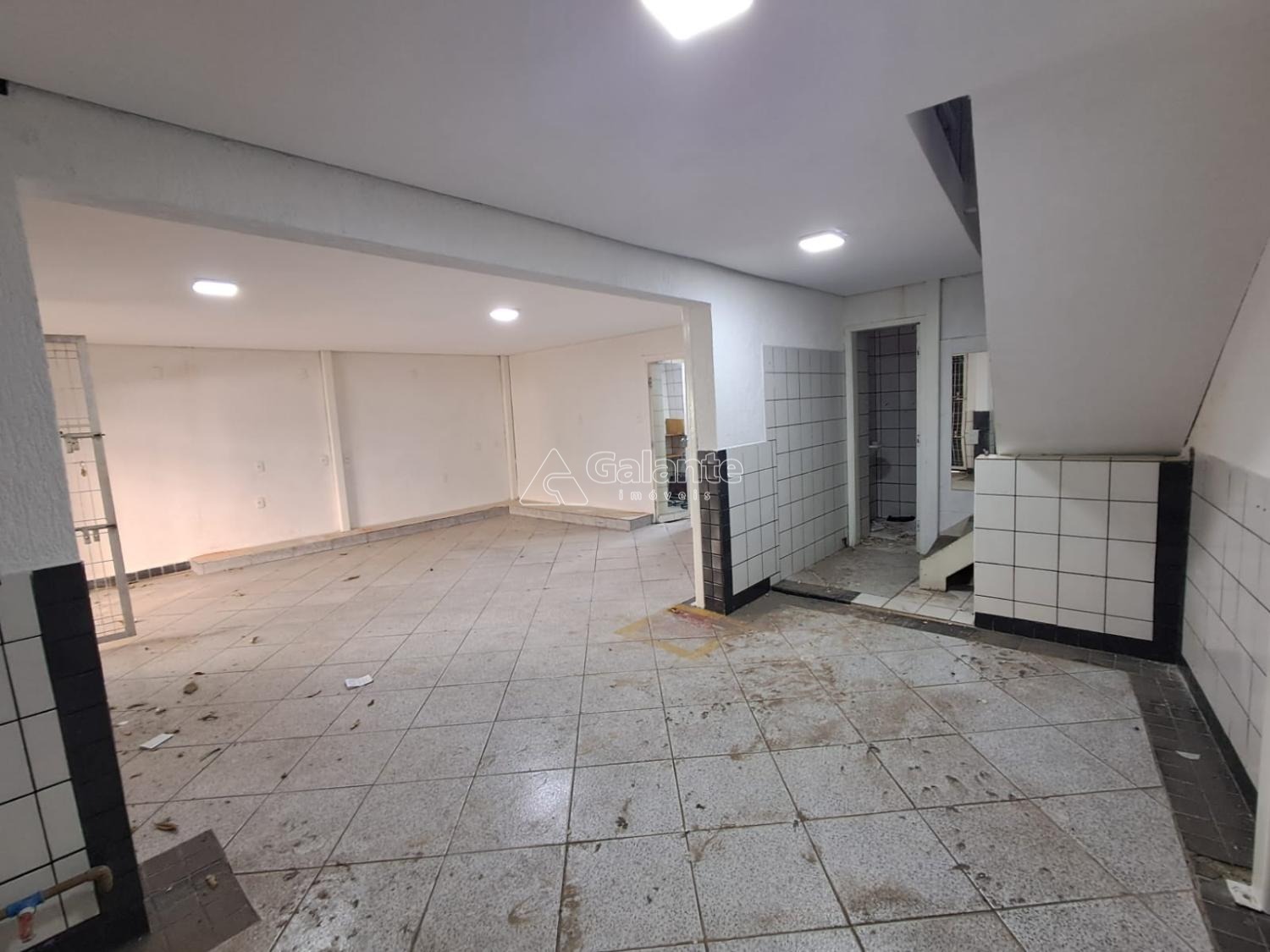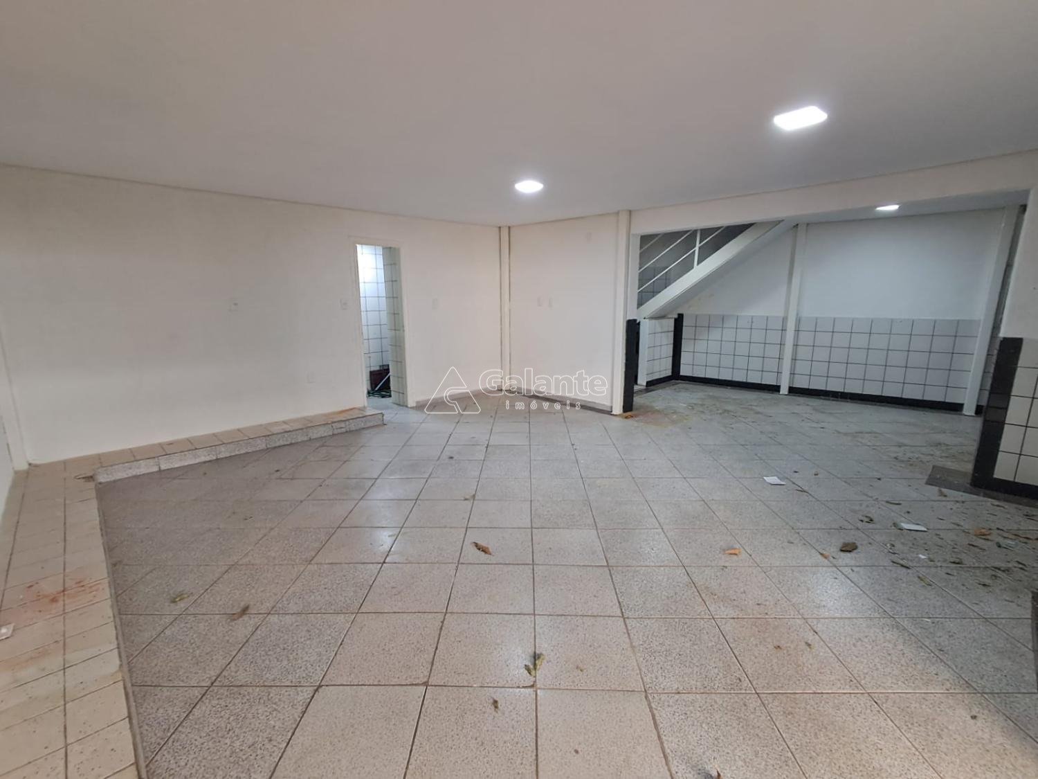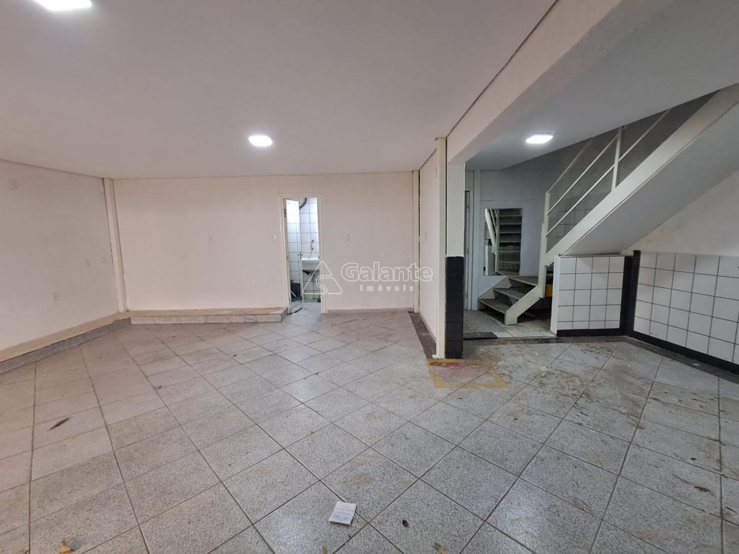 Mesanino, salão vao livre, piso ceramico, banheiros, copa.