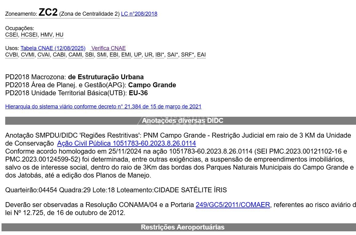 30 mts para lateral. Zoneamento ZC2.